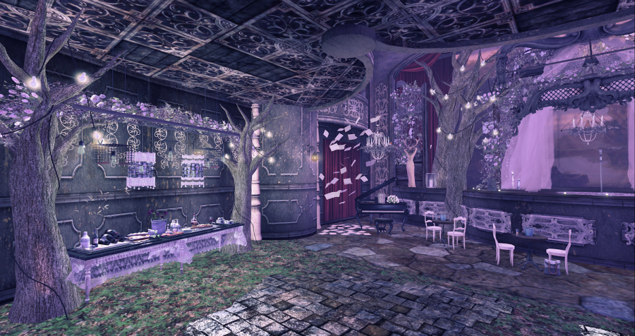 The largest and most dominant building and area on the sim is the Flux Sur Mer Theatre building. Again the detailing inside from the banquet table to the linen decorations are exquisite.