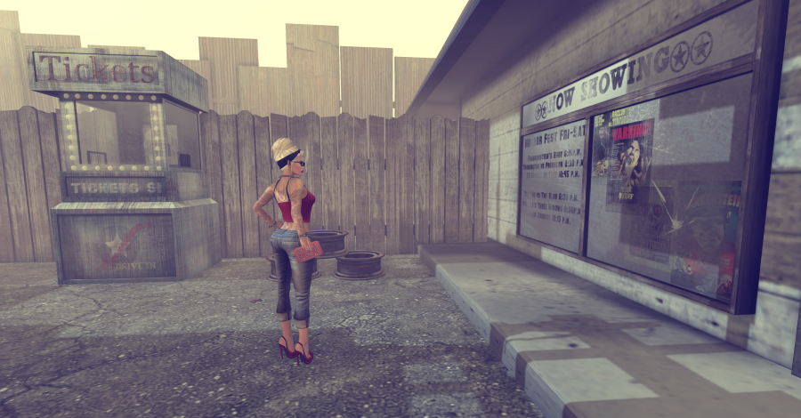 Talking of the past…my blog today is really very retro due to this gloriously grungy Old Americana set from unKindness. The set has been designed specifically for the Garden Gacha which starts on the 1st August and brings us another unusual spin on the traditional gacha. Every 20 spins of a single gacha you receive a ‘Seed of Inspiration’ Prize. No luck required – you get it every 20 spins! It’s like an ultra rare that you know damn well you are gonna get! In this case it’s the super duper Concession stand prop…the big thing with EAT written on it and the ‘now showing’ info on the side. unKindness have kicked out all the stops on this set 3 RARES, 1 Sees of Inspiration Prize, and 11 commons this is the perfect Saturday night retro set up! I have all those retro tunes spinning through my head as I take these pics!