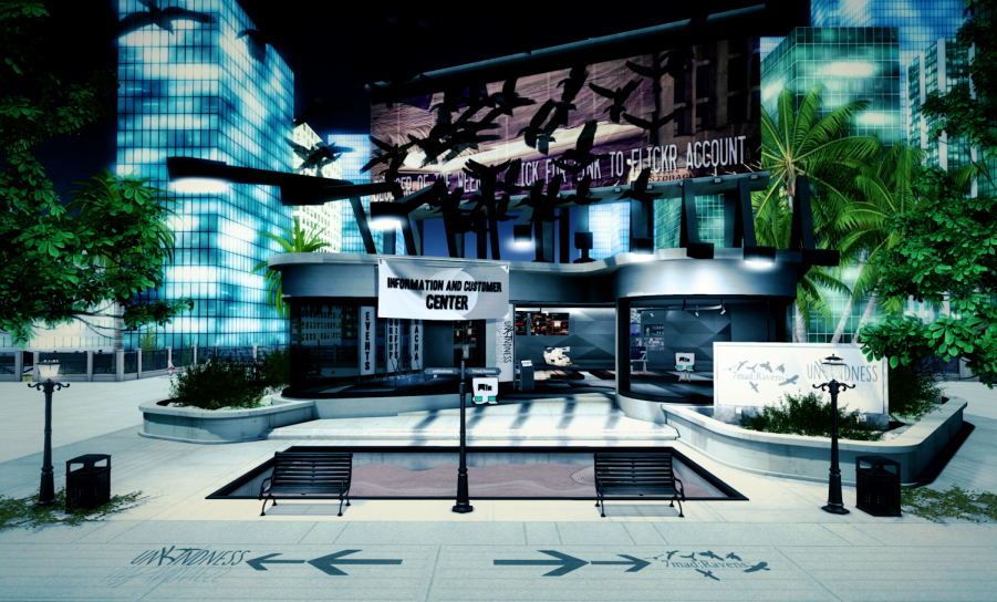 While 7mad;Ravens brings you raw, edgy accessories and mainly male clothing items, unKindness brings you an eclectic mix of furniture and home decor that you really should check out at events and in the mainstore. So my LOTD and picture was brought to you by both stores! The Villain sign in the background of the pic below is a special item on sale at 7mad;Ravens for The Mix. The ‘trolley’ Settee’s are from unKindness for the LTD Event which opened today. Sette comes in four color options. Silver, Iron, Gold, or Bronze and feature 6 custom poses (which consist of 2 male sits, 2 female sits, 2 couples sits).
