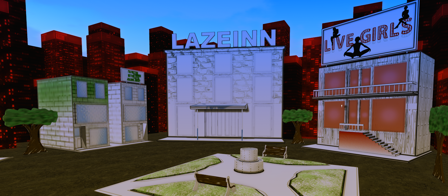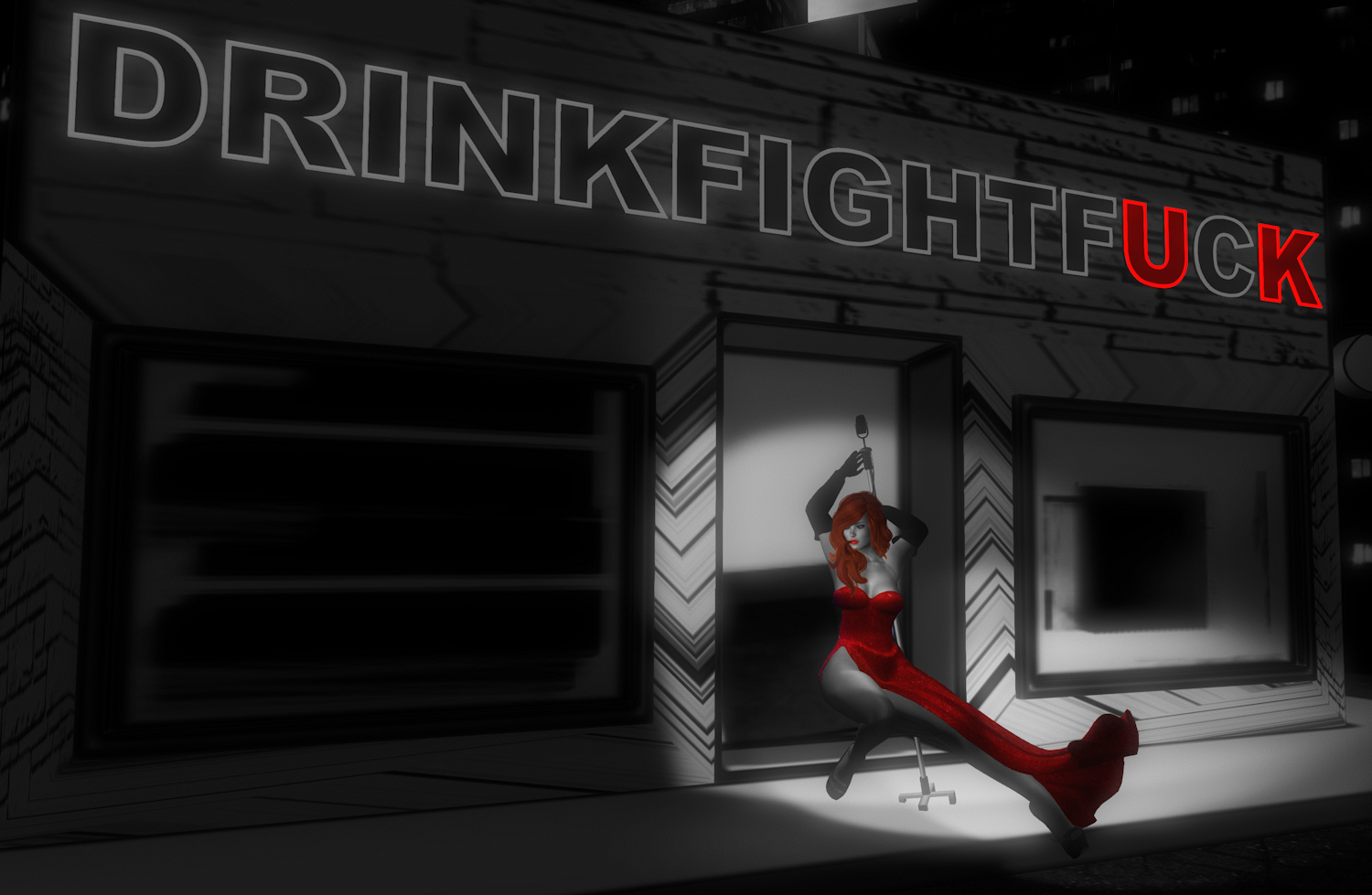 I couldn’t resist going for the Jessica Rabbit look when I received this gacha pack from unKindness specifically designed for Festival of Sin. The set is a hand drawn papercraft/comic style building set to produce your very own Sin City! Of course Jessica had to be found slouched outside the Red Wrath Pub…SL imitates RL yet again in my case!
