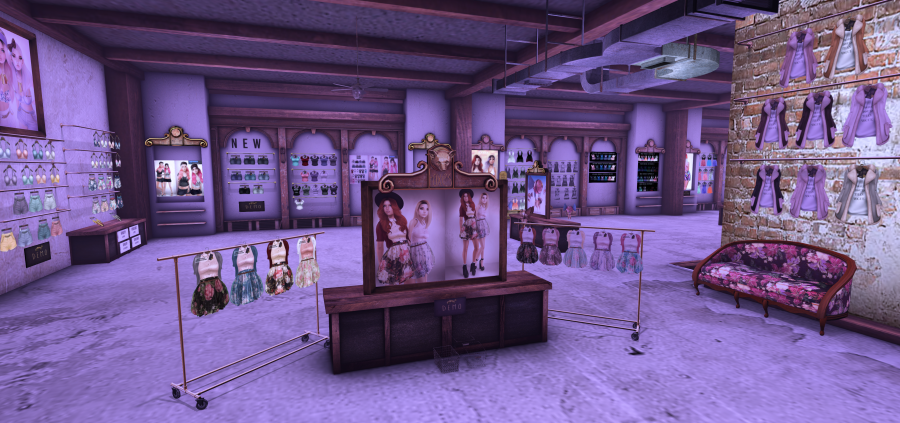 My second store of the day is the gorgeous Foxes mainstore. The Foxes store is part of a sim full of awesome mainstores that have really gone all out on making a wonderful shopping experience and beautiful landscape for it’s visitors. I won’t go into too much detail because I plan on doing a post in the future on this type of sim and will definitely be featuring the Sleepy sim as part of that. As you enter the Foxes store through the main entrance you will see the main reception area, if you turn your avatar around to be facing toward the entrance you will see on the right hand side the group gift wall, and to the left, the information wall with redelivery terminal, group information and more.