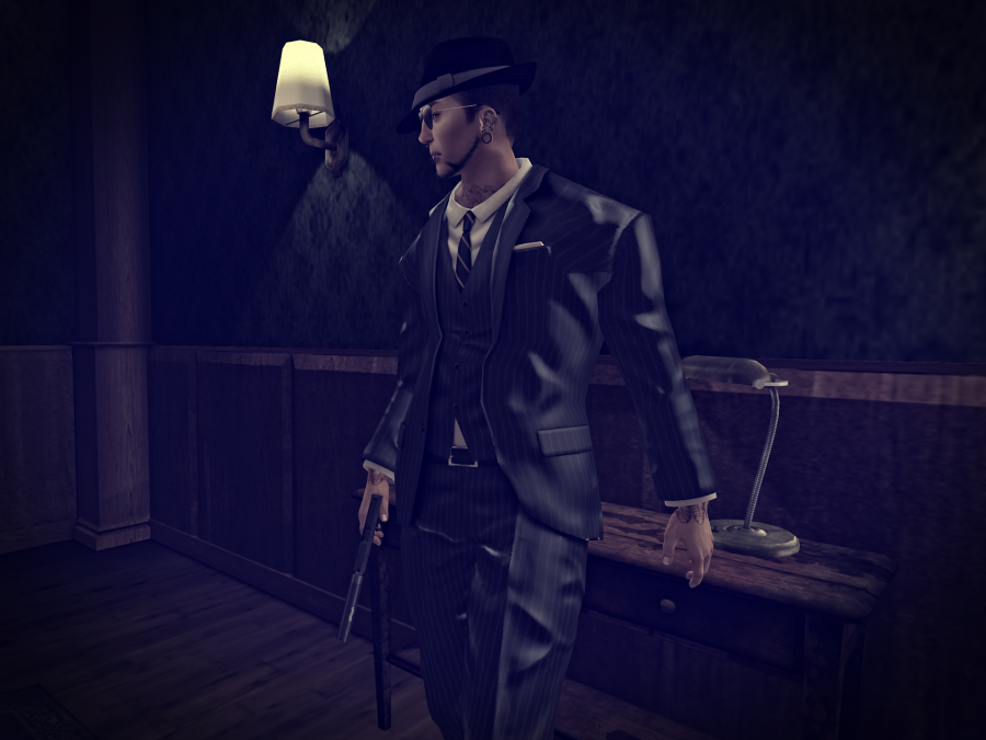 He’s also got a pretty photogenic avatar and great taste in clothes so I knew he’d be up for helping me out with some pictures for the blog of the MadPea Gacha set for 6th Republic. And doesn’t he look dapper?