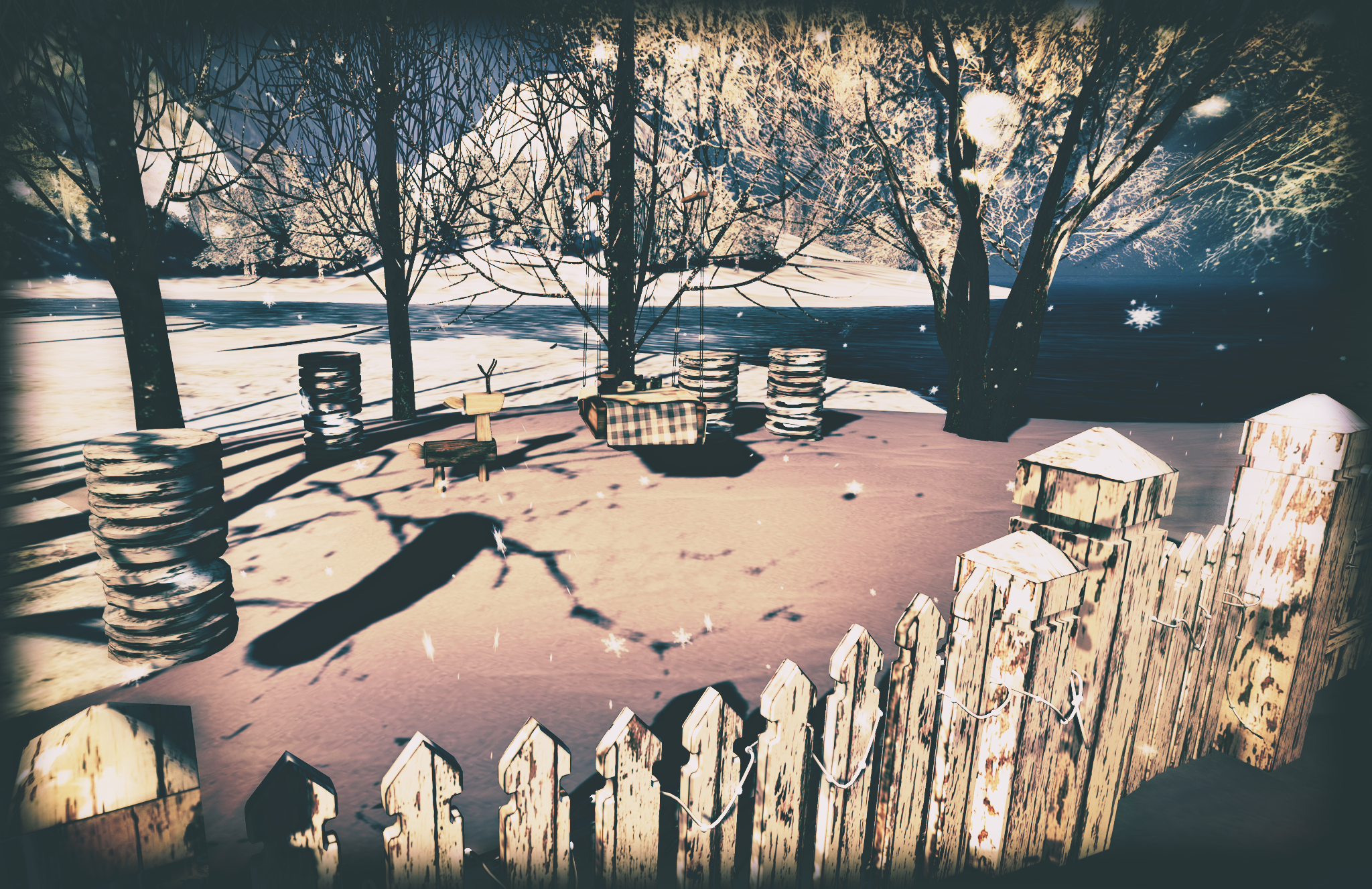 The other thing that took a forced back seat over the last week or so has been blogging and I’ve found that quite frustrating. No one beats themselves up more if I think I’m failing or letting people down and I’ve felt that way quite a few times the last couple of weeks. But, there is light at the end of the tunnel and there is also light from unKindness to be grabbed for those winter gardens! Now, these Wilderness Lamps were made for LTD event which finished yesterday but I know that Jamie will have these amazing items in the unKindness mainstore super quick and you should definitely check them out. They work perfectly with the Winter Picket Fence which is still available at faMESHed. In addition to that is this perfect winter warming picnic gacha set from Serenity Style. which is new at Shiny Shabby.