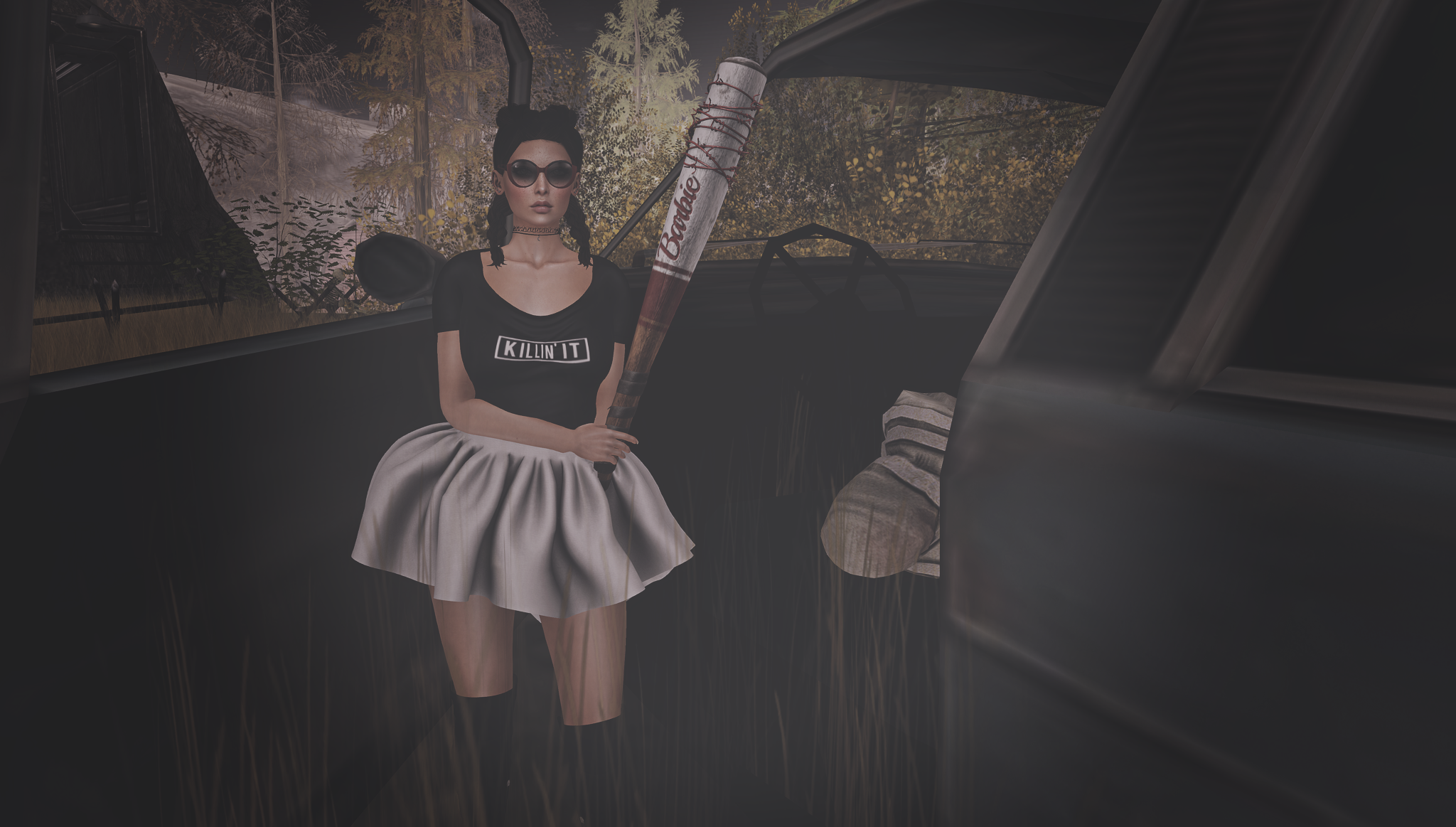 When I get to rl work on a Monday morning everyone asks each other ‘What did you do at the weekend?’ I rarely tell the complete truth because I’m not sure how ‘I played with my Barbie’ would work as a response. Barbie in this particular case isn’t a code name for my avatar, though I do love to play dress up with her, No, Barbie is my baseball bat from the Why So Mad Gacha set from MadPea available at The Arcade Gacha throughout June.