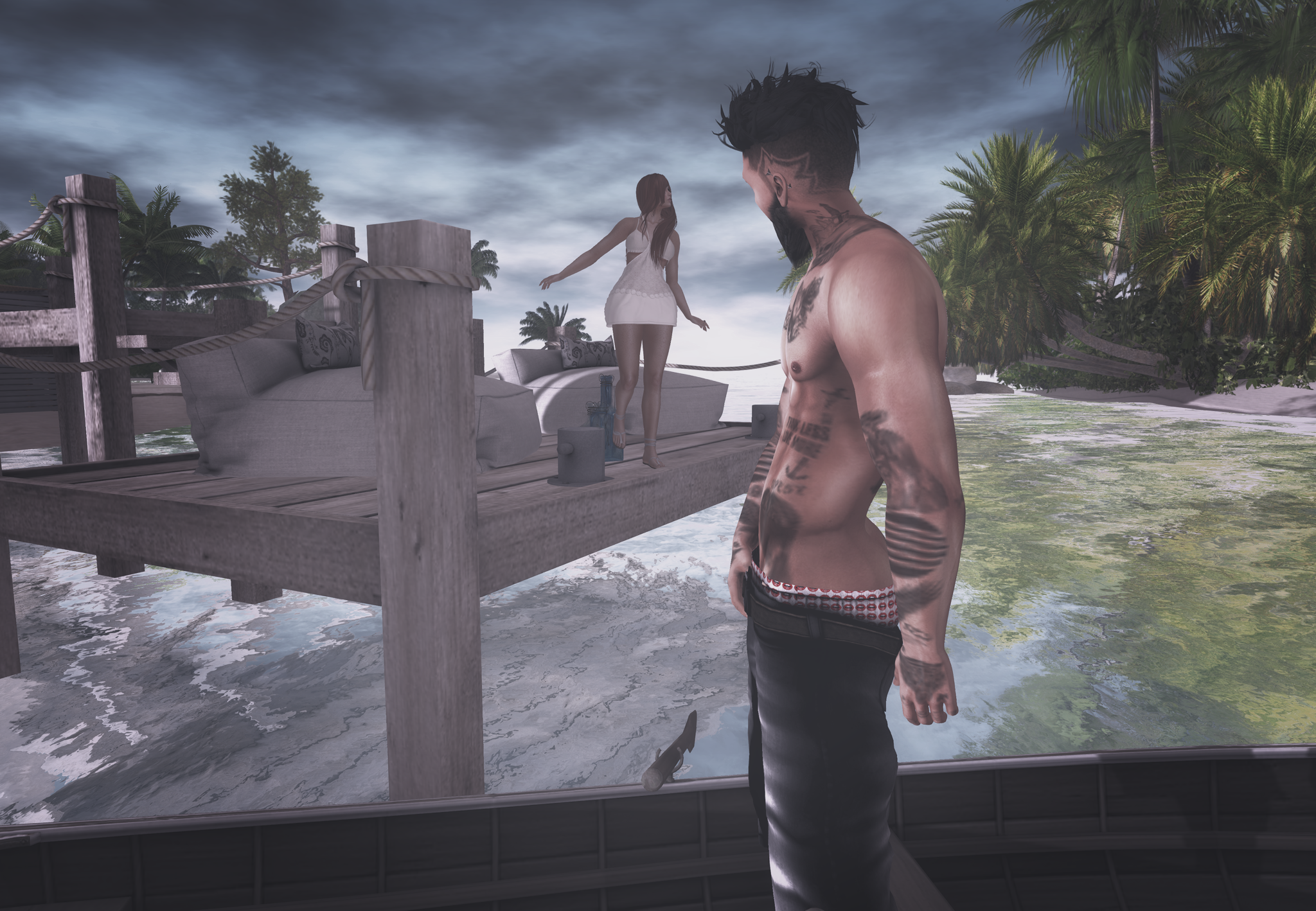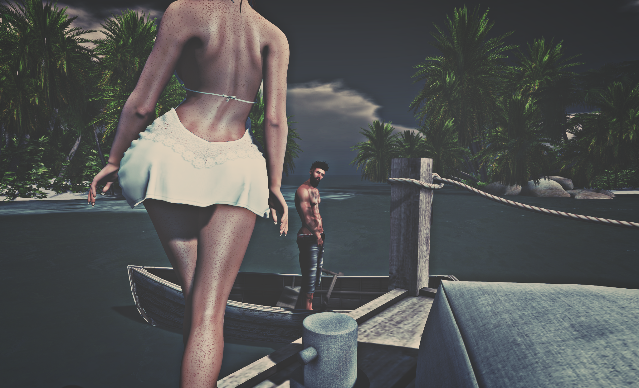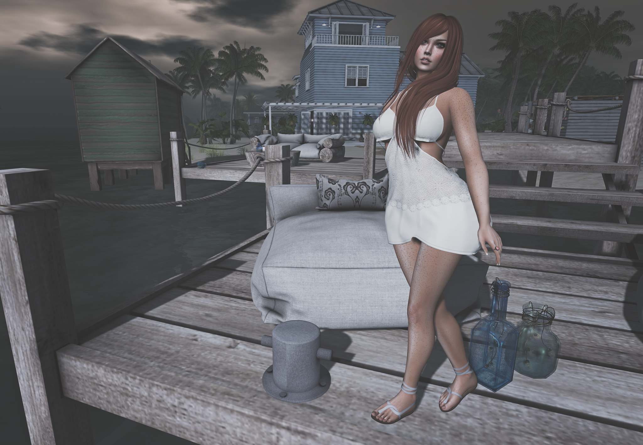 It all starts with a boat! Jammin have produced the rowing boat featured in the photos for Summerfest and it comes in two versions, a bare word and a worn paint version, seats two avatars and looks great at the end of my Goose dock. My look for the photographs is primarily thanks to E-Clipse Designs at Tres Chic. The perfect summer dress with a broderie anglaise texture gives me that summer boho look like I would favour in real life as well as SL . The dress comes in 4 colours and in standard mesh sizes as well as Maitreya and both Slink sizes. Rowing boats are really not meant for heels so it was lucky that I had the new fri.day Cleo sandals, also new at Summerfest to add to the look. These are exclusive to Maitreya and come in a range of soft earthy tones that you’ll be able to colour match to almost anything I’m sure. Last, but definitely not least is the new mainstore release hair from from Truth. It’s called Grecia and as Truth often does there’s a choice of options of how to wear this year included in the pack with two different fringe/bangs options.