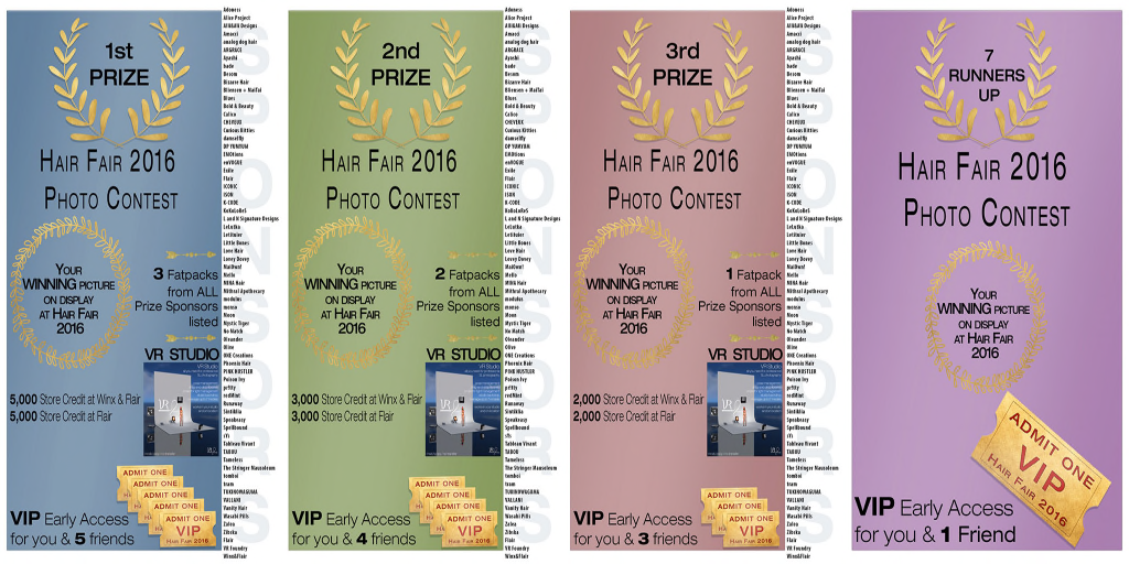The prizes in this years Hair Fair Photo Contest are simply hair-raising and…there’s so many opportunities to win! 1st, 2nd and 3rd prizes PLUS 7 runners up prizes all with early access to THE hair event of the year AND with the chance to bring your friends along with you!