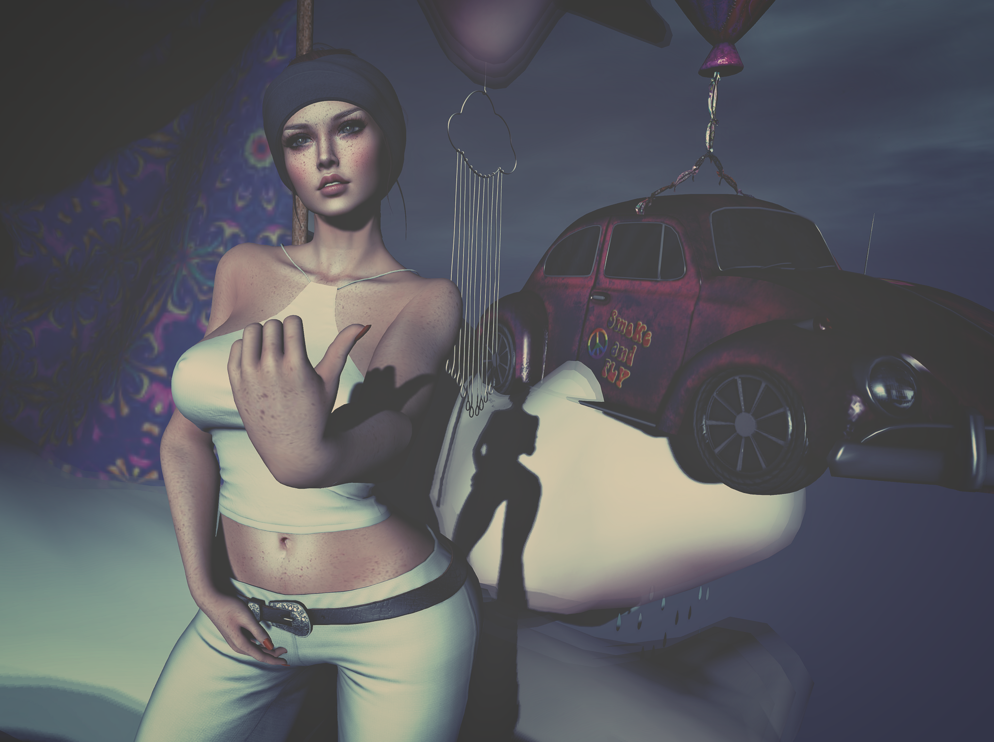 I got my hippie on today for the post by building myself a dream hippie getaway in the sky inspired by the Poisoned Diamond Beetles from Indie Teepee. I’m featuring the floating one that you can sit on and fly around but it does also come in sofa and bed version too for your hippie hangouts.