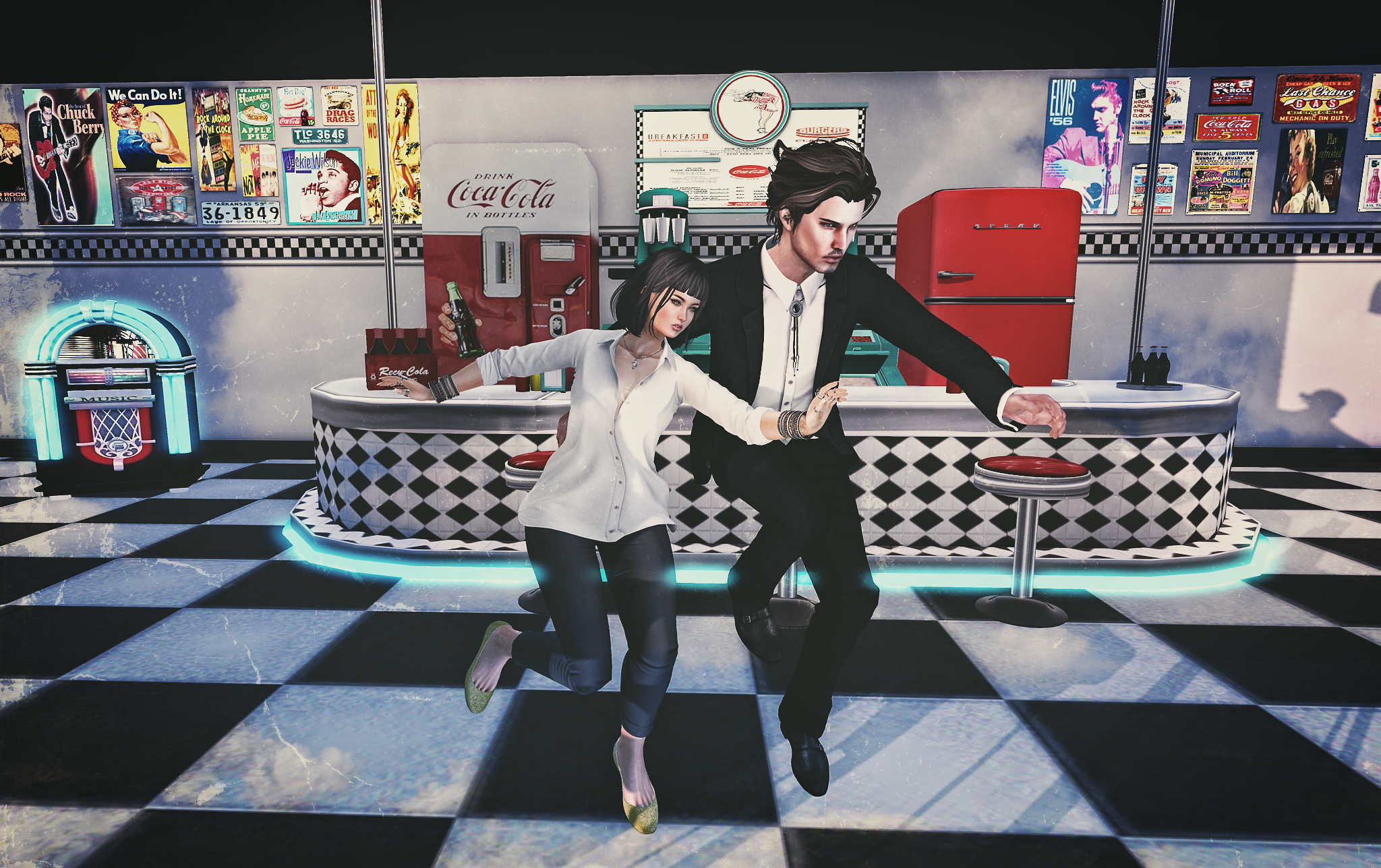 I DJ once a week at the beautiful Blithe sim, owned by Harlow Heslop. Normally I do an upbeat alternative, indie and indie pop set to really get my weekend off to a great start. A few weeks ago I met Kobie at one of my sets and we instantly hit it off. He’s very quickly become a good friend and someone I enjoy hanging out and chatting with a lot. We gel on many levels – love of music, clothes, shopping, blogging…and a shared insanity level that means we both like to do stuff that seems batshit crazy to anyone else.