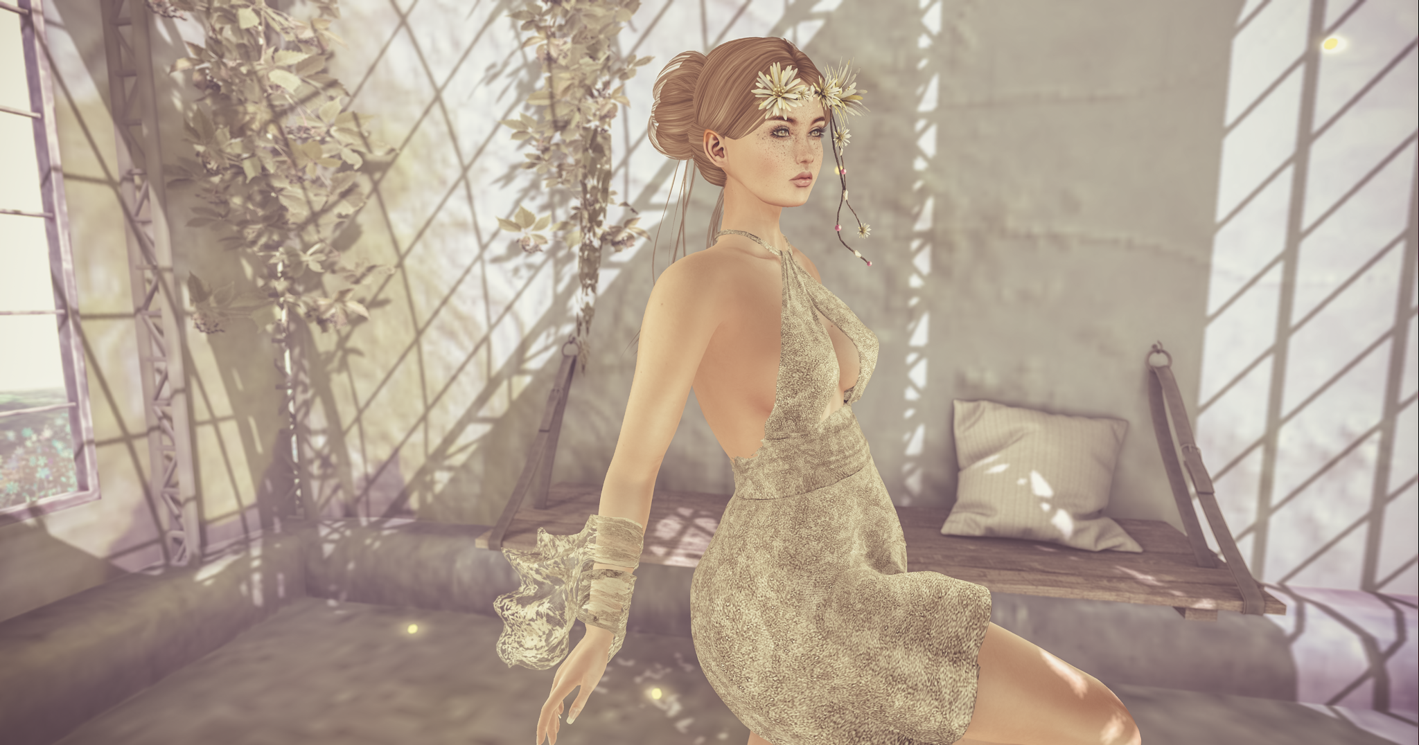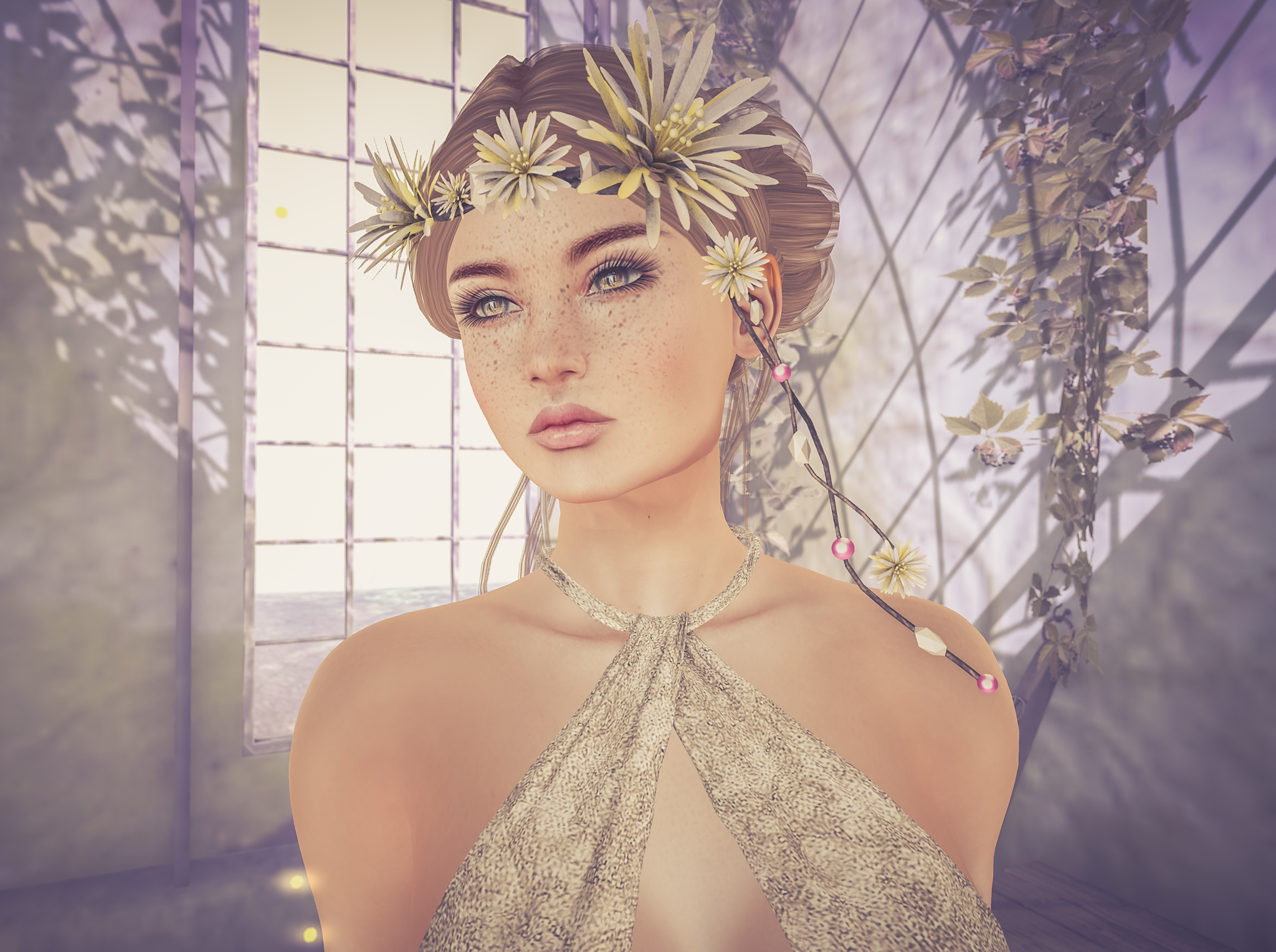 I visited the new event Limit8 yesterday and was pretty surprised to get in first time! Of course when I looked at the sim I saw why – 100 avatar limit! I derender everyone the minute I land and didn’t have any lag issues at all. I couldn’t resist the headpiece from Astralia at the bargain price of 99L$ with a 3 colour change hud for the beads and flowers. It sits perfectly on my new hair from Exile – Southern Shade which was released yesterday at C88.