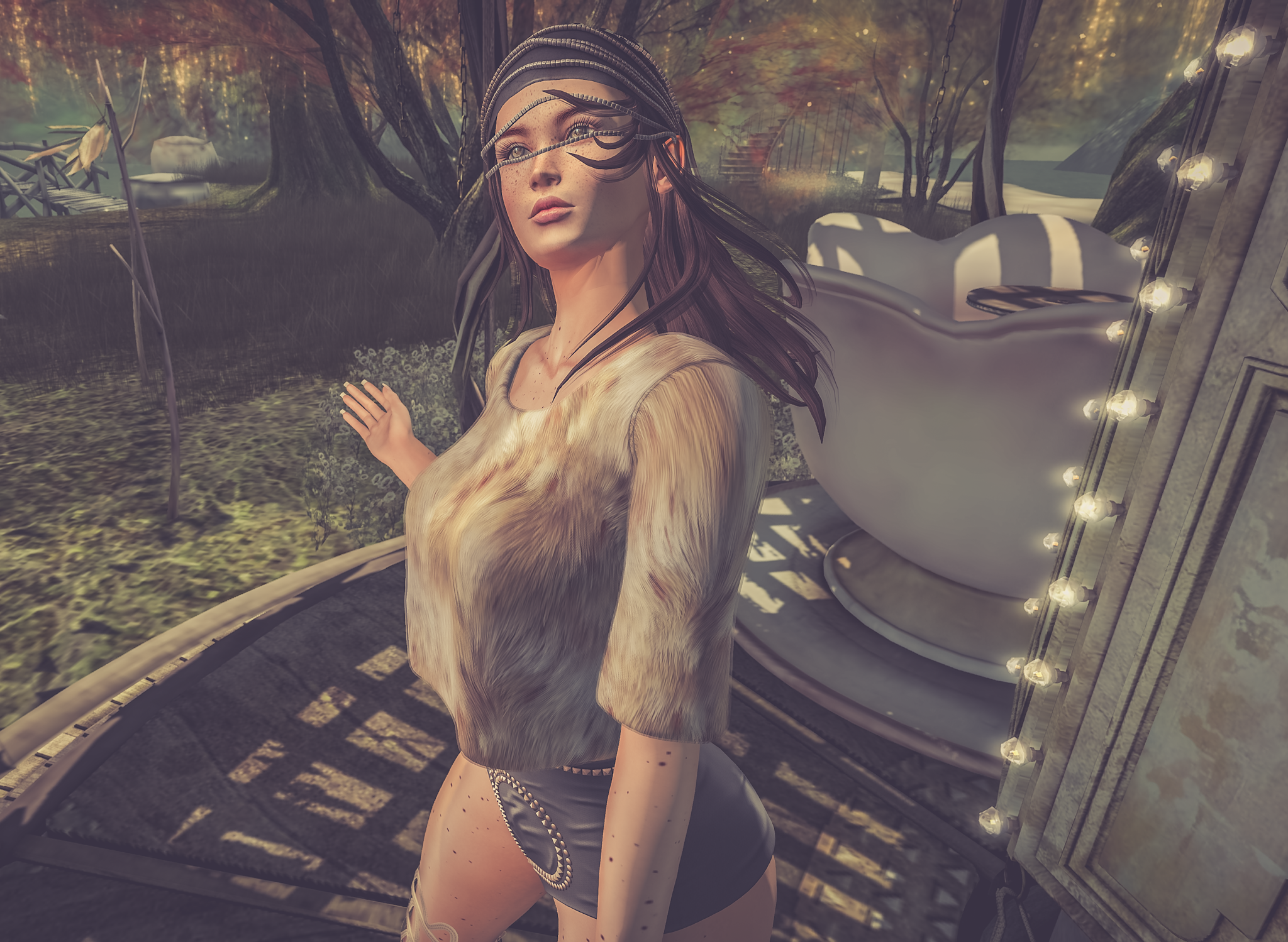 I’m catching up a little and finally made it over to the Mesh Body Addicts bi-monthly event. The outfit I’m wearing is from Ascend. The fur top has a open back and look incredibly graceful and sexy. It comes in fits for Slink Physique and Hourglass as well Maitreya Lara (worn). I mentioned I had seen the hair in several blog pictures from Mina and picked that up from Shiny Shabby. It’s a collaboration hair with Meva who are one of my favourite accessory stores so I loved seeing how this hair worked.