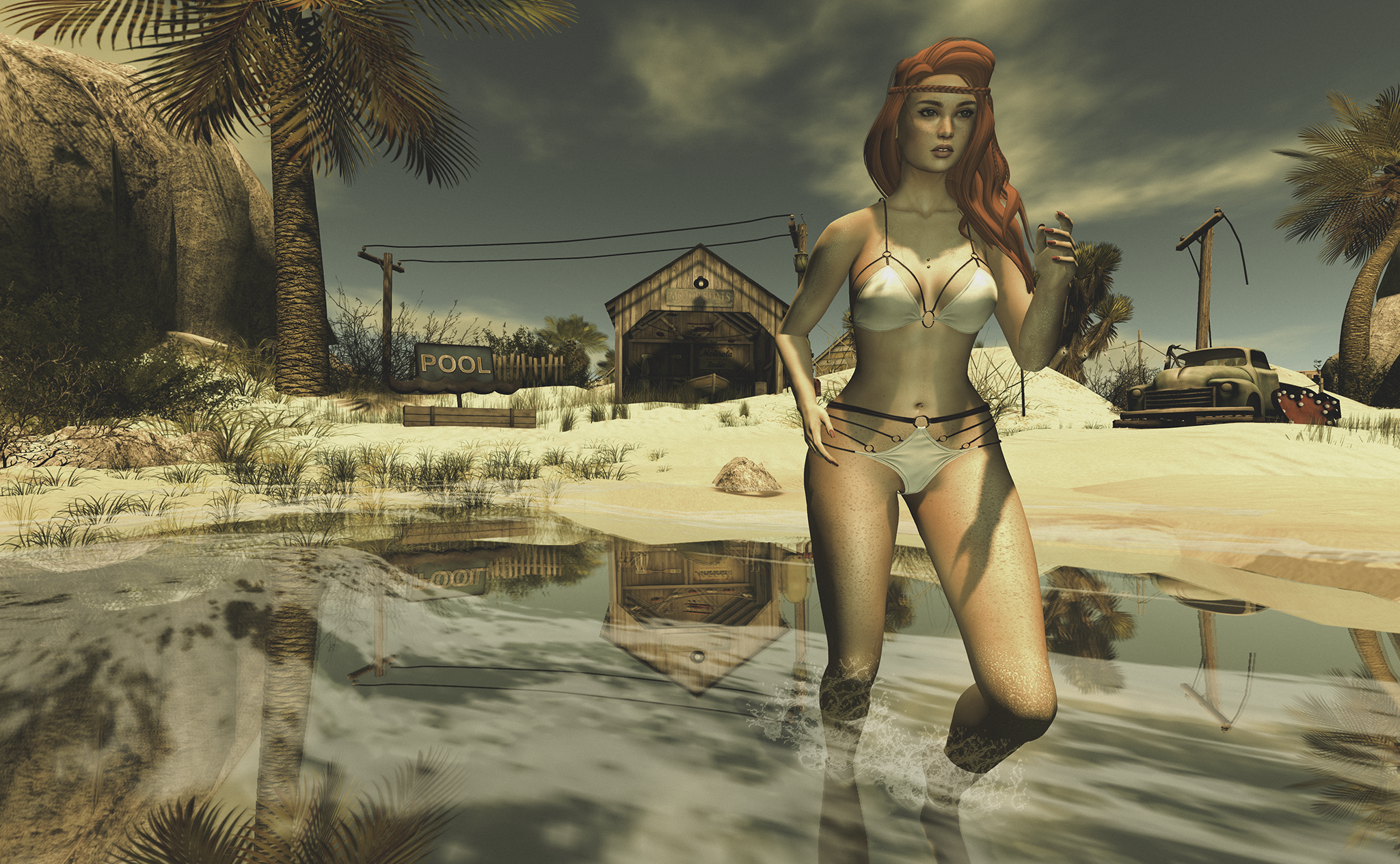 You gotta love the fact that you can experience all four seasons in one day in Second Life. Now, I seriously LOVE Autumn, it’s my rl favourite time of the year but having felt a bit under the weather this week it actually felt good to throw off the pixel sweaters and jeans and visit Baja Norte sim for some summer sun. It’s always been a wondrous aspect of SL to me how closely we associate with our avatars…how a pixel cuddle can actually make you feel better and cared for, how running into the warm sea on a beautifully decorated summer sim can almost make you feel warmer and carefree or even how retail therapy actually works better for me in SL than it does in real life….basically because it’s a lot less stressful. It’s why our surroundings, the places we go and the people we meet in Second Life leave such a defining impression on us. I try to take a moment each day to look around and really feel the difference your SL environment is having on my experience of SL as a virtual reality and most of us find it easy to realise the importance of people we often overlook the surroundings.
