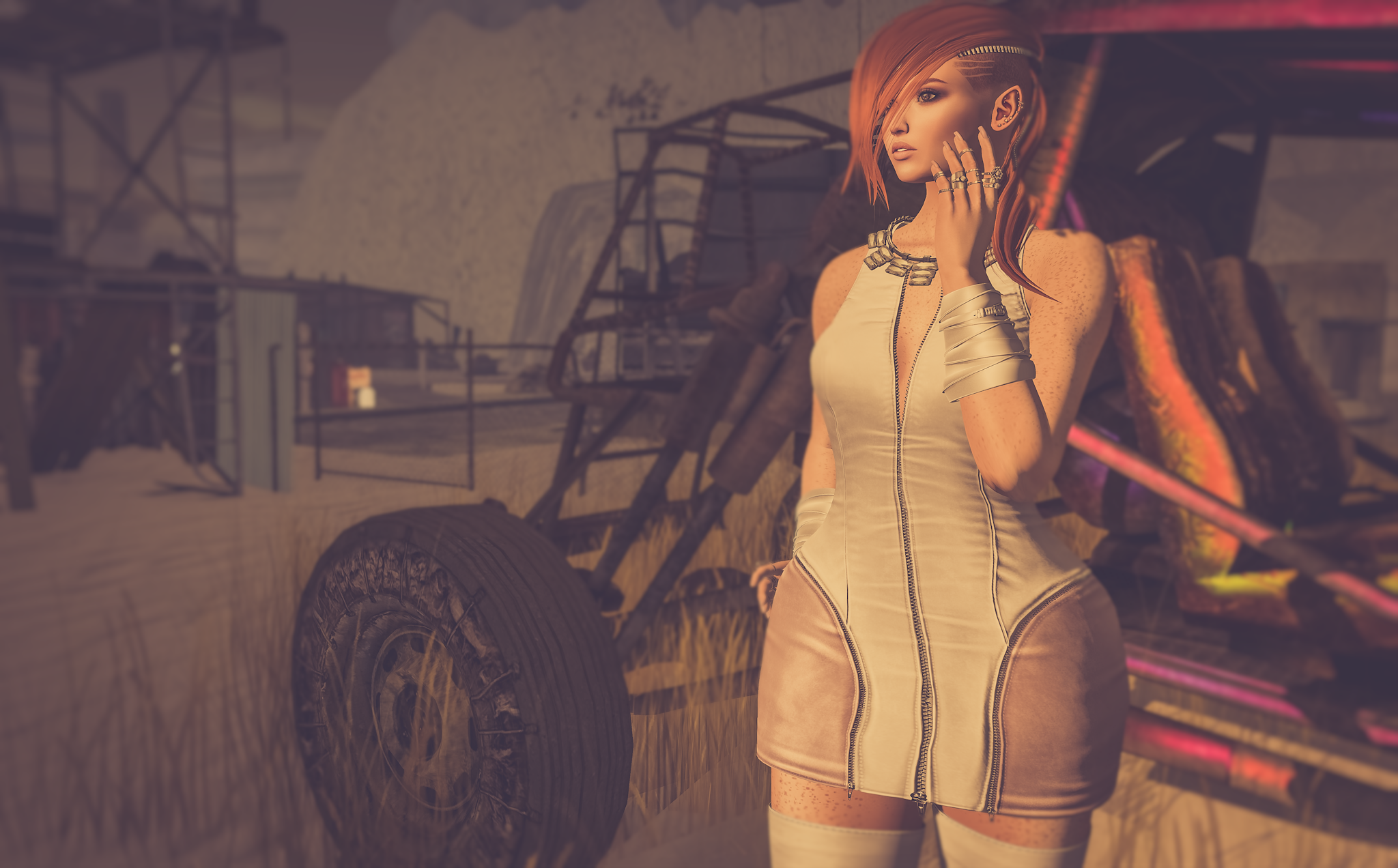 The releases are coming thick and fast from United Colors at the moment which makes me a very happy Kess…the biggest problem is which one to show first! Todays is from ULTRA event and when I first put my first thought was ‘well damn now I gotta find knickers in my inventory…or maybe not!’. UC is the master of giving options to how you wear their items and this one is no different. The sides of the dress can be hidden (the pale pink on the dress above) to turn this dress into a rather daring and seductive ‘barely’ coverall. Never fear it can still be worn out in public without getting you barred from your favourite sims by adding some panties or by a little alpharing…or not if you dare to bare! The dress comes in a large mix of colours from pastels to dark tones and the zipper textures can also be changed. Fits for Belleza Freya and Isis, Slink Hourglass and Original and Maitreya Lara (worn) are all included.