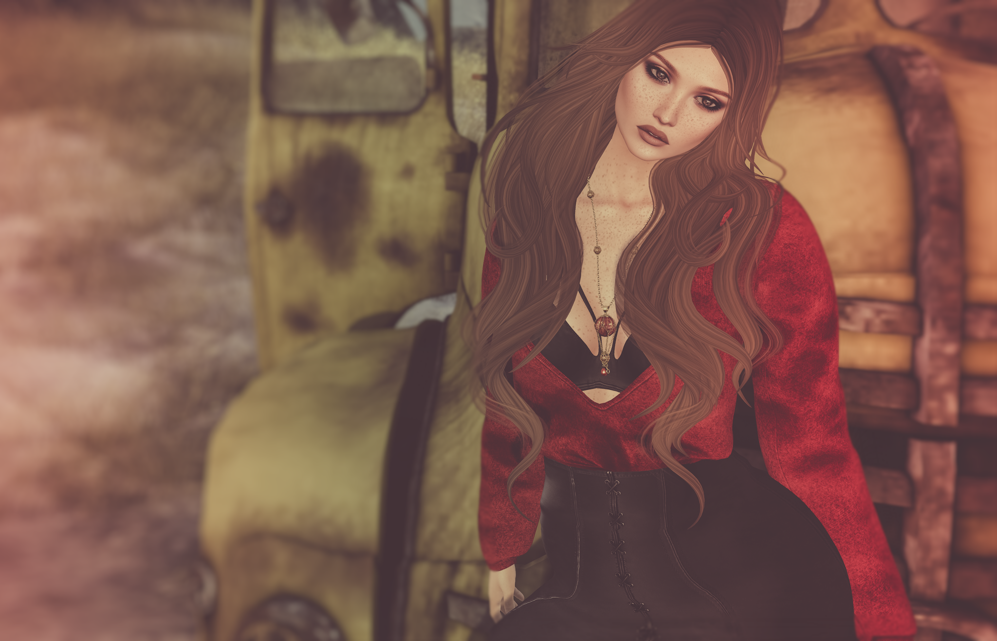 My outfit is a three part set from Milk Motion also available at Tannenbaum. It comes specifically fitted for Maitreya Lara and with a range of colours for the skirt in denims and leathers as well as a numerous sweater textures and a colour change hud for the harness bra. In addition the sweater comes with a tucked in or loose option.