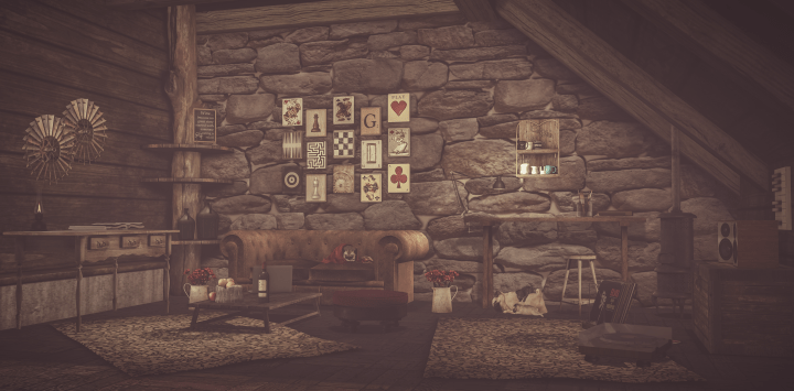 I had to giggle at the name of the post which is named after the skybox and gacha I’m using for the photograph today. Anyone that knows me knows that I have no idea how to be lazy in SL! I have a bit of a running joke going with my friend Jase, who is a self-proclaimed lazy arse when it comes to SL, and the fact that I find it almost impossible to be lazy. I literally start to get itchy hands and feet if I don’t have something to do, Luckily with this set from THOR i needn’t worry because it’s full of things to do with paint pots, books and records! I have to admit that if I was the type to take a lazy break in Second Life this would be my perfect environment with a rustic feel and a warm stove and lots of coffee supplied by one of the other featured designers, Merak. However it’s not going to be this weekend as I have a stack of jobs to do a mile high, so, I will leave you with this gorgeous view and the list of where you can get them and hop off to the next task on the list. Have a great weekend whether you’re being a ‘Jase’ or a ‘Kess’.