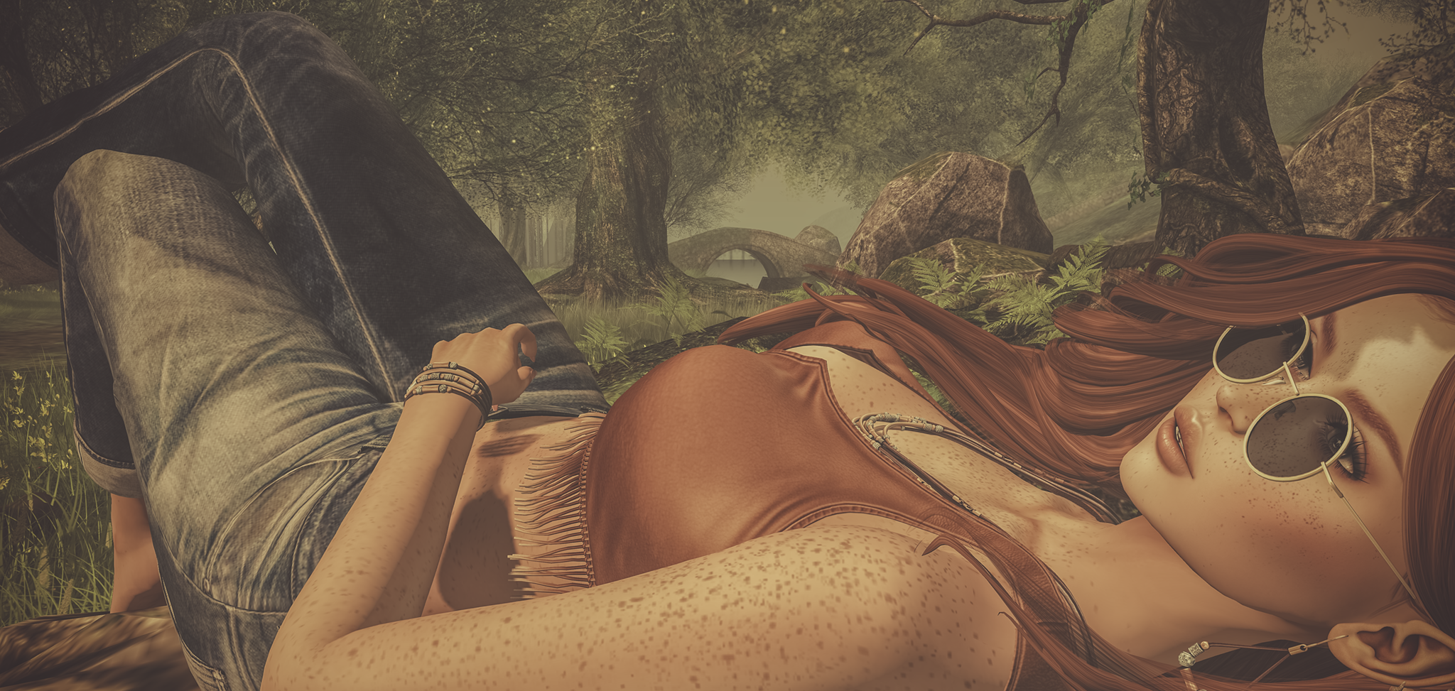 The top is from United Colors for BishBox and comes with a hud with 6 colour options and then two different styles within each colour. So for example this orange also has the option to add a floral decal. I wore this today with physics and I loved the way the fringe moved with a soft bounce physics too. It comes in fits for Belleza Freya and Isis, Slink Original and Hourglass and Maitreya Lara (worn).