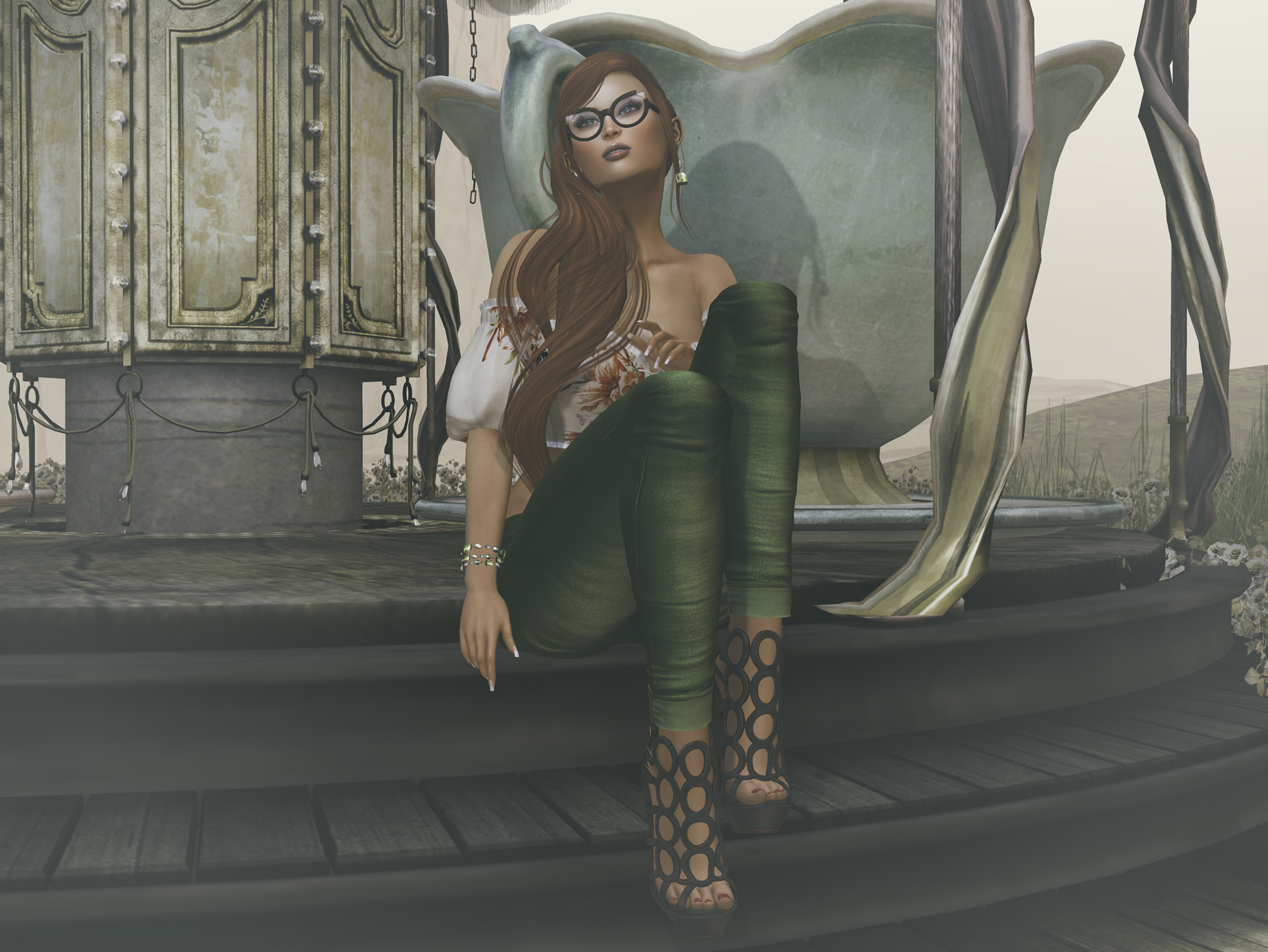 My top is the latest release from COCO at FaMESHed and those of you that follow me know what a sucker I am for anything gypsy, boho, shabby chic style as far as clothing and my look go, so you will all understand how much I adore this item. It comes in its for Slink Original and Hourglass as well as Maitreya Lara (worn) and in 3 striped, one lace, one floral and one black texture finish.