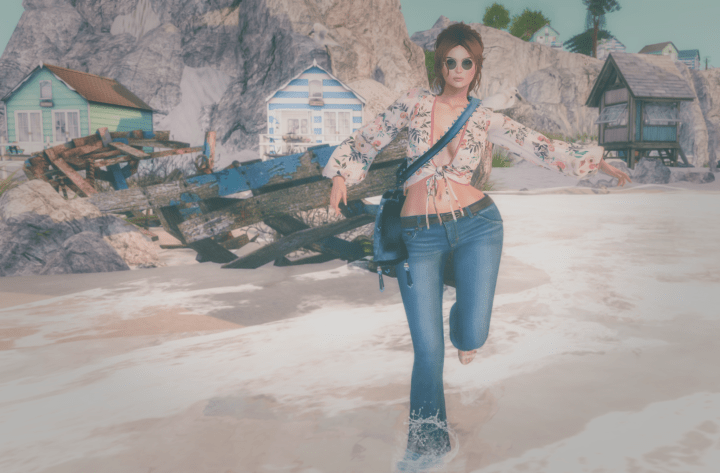 Uber just opened it’s doors for another round and this time it’s a theme round. Interestingly the theme is The Hamptons and I say interestingly, because being in the UK this theme didn’t really mean much to me other than having heard The Hamptons referenced in a few tv shows. So, I was curious to check it out. The outfit I’m wearing is from Lapointe & Bastchild Swear and is a top and pants set packed full of options and extras. The top is a gorgeous floaty and elegant casual blouse with tie front. The HUD comes with 1 nautical texture in 3 colour options, 10 plain pastel gauze textures and 5 Print textures including the one I’m wearing in the photograph. The jeans are a gorgeous flared jean which comes in two heights, with or without heels, and in 6 colourful twill textures and 15 denim textures. There are also 5 buckle options, and 24 different belt colour options or you can remove the belt too! There’s simply so many ways to wear these!! Fit wise both items come in fits for Maitreya Lara (worn), Slink Hourglass and Original, Belleza Freya, Isis and Venus as well as standard mesh sizes.