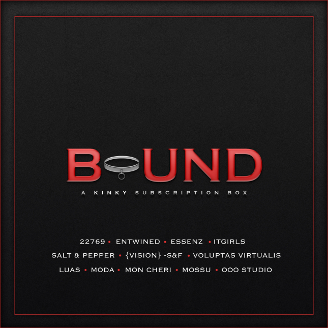 Pale Girl Productions brings you Bound Box, a quarterly kinky subscription box featuring 12 designers, geared toward the BDSM/Kinky community. Our first box will be released on July 12, 2017 and subscriptions started on June 9th. To stay up to date with all teasers and information regarding Bound Box, you can join our inworld Bound Box Update Group.