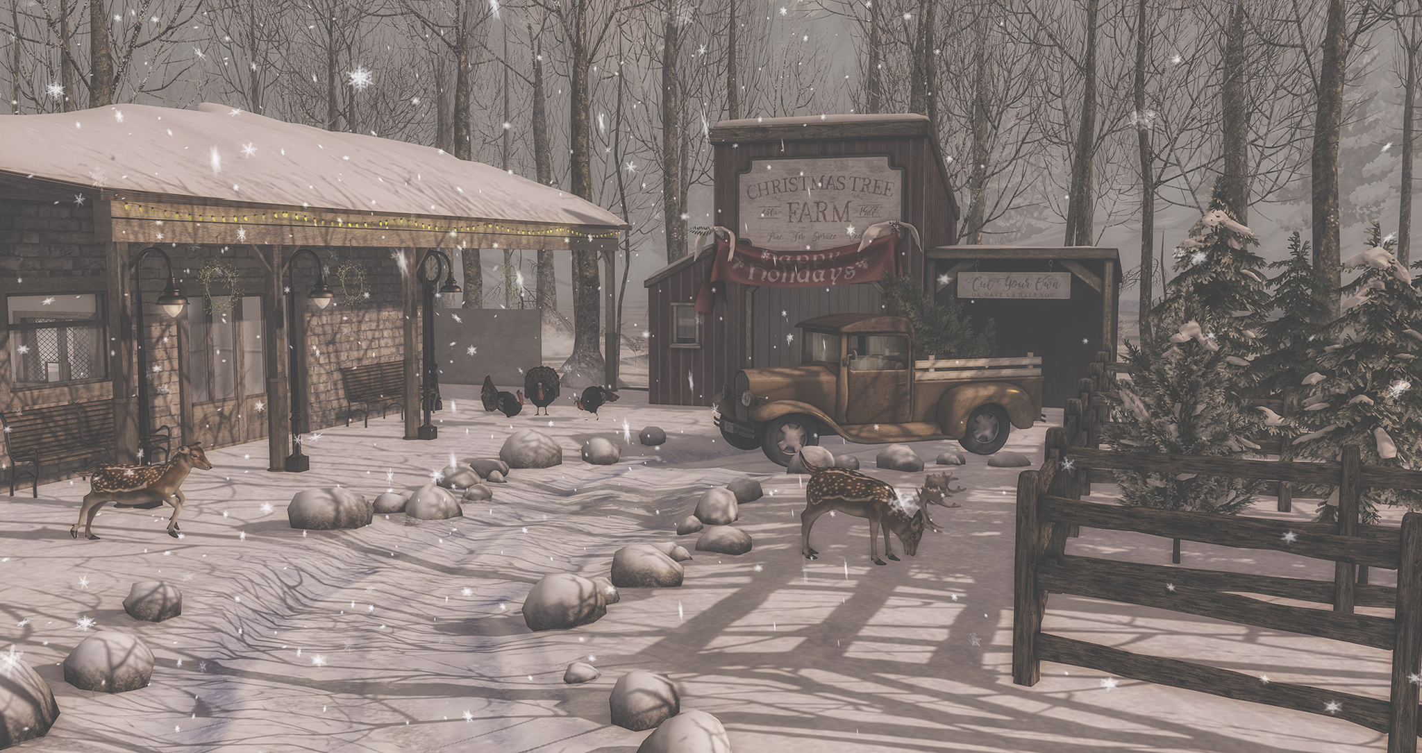 Christmas in my Second Life household is definitely underway already. Last week I set up a separate ‘thanksgiving’ home to surprise Zedekiah with and we loved it so much that we’re keeping it set up and adding Christmas decorations to make it our Holiday Home. We’re literally living in a festive snow globe! With the Arcade due to open in a few days I am sure we will be adding much more to it too!