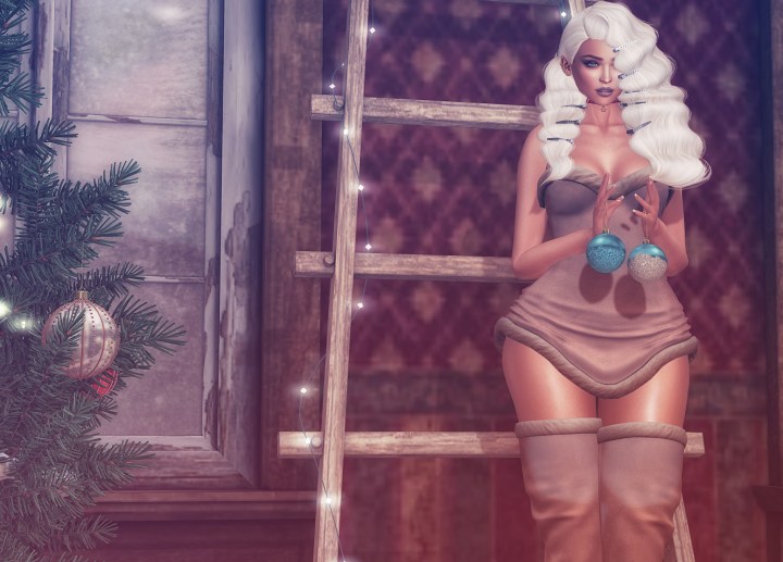 I’m wearing Salt & Pepper’s Dress with Essenz boots which are both in the box as well as the lighted ladder behind me which is packed full of adult animations. I have a feeling I’m in for a lot of coal this year!