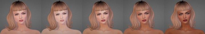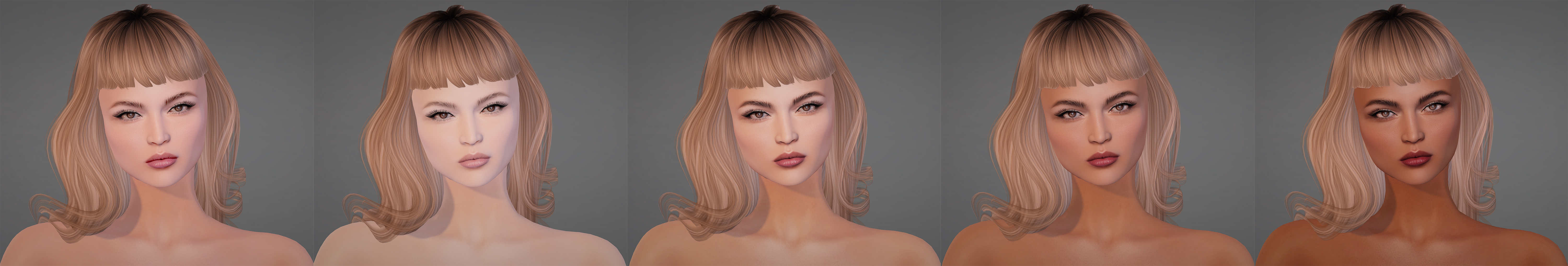 In today’s photo I am wearing another new skin for LeLutka available at Skin Fair from tomorrow from YS&YS. She is called Natalie and comes in the 5 shades shown below. Click on the photo and then click again for a full size image. The images below are unedited raw shots with lipstick and eyeliner included in the skin pack.
