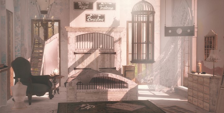 I bought the Scarlet Creative house at C88 and I’m setting that up as a summer house on my sim and I loved how these sets all came together for the bedroom area. All the details of the items used are below. More photos of my home coming together soon.