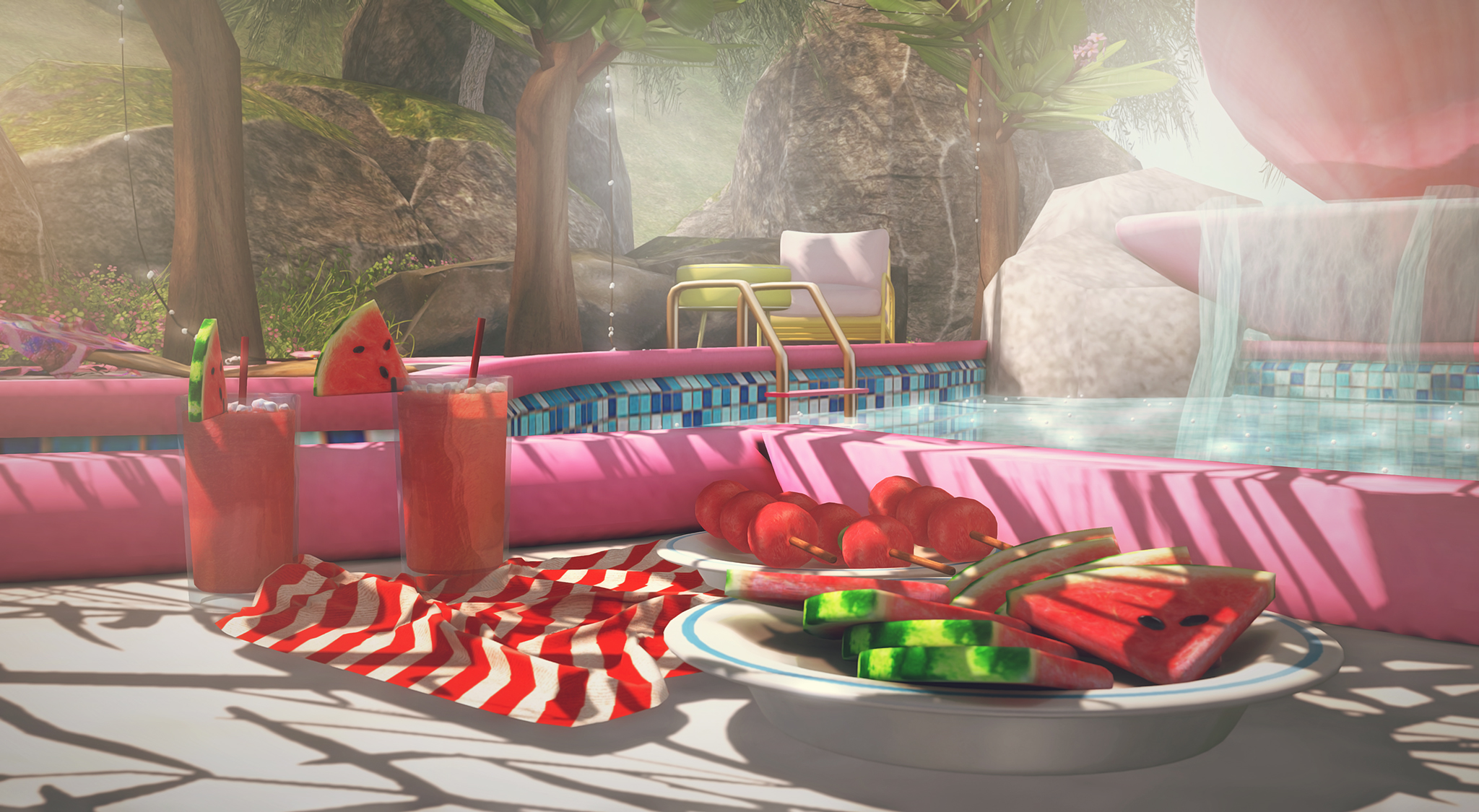 I’ve done a close up shot of the OMEN release for Summerfest below because I love well made food items in Second Life and especially summer ones. Tres Blah, Dust Bunny, Apple Fall, Pew Pew and of course, OMEN, are some of my favourites.
