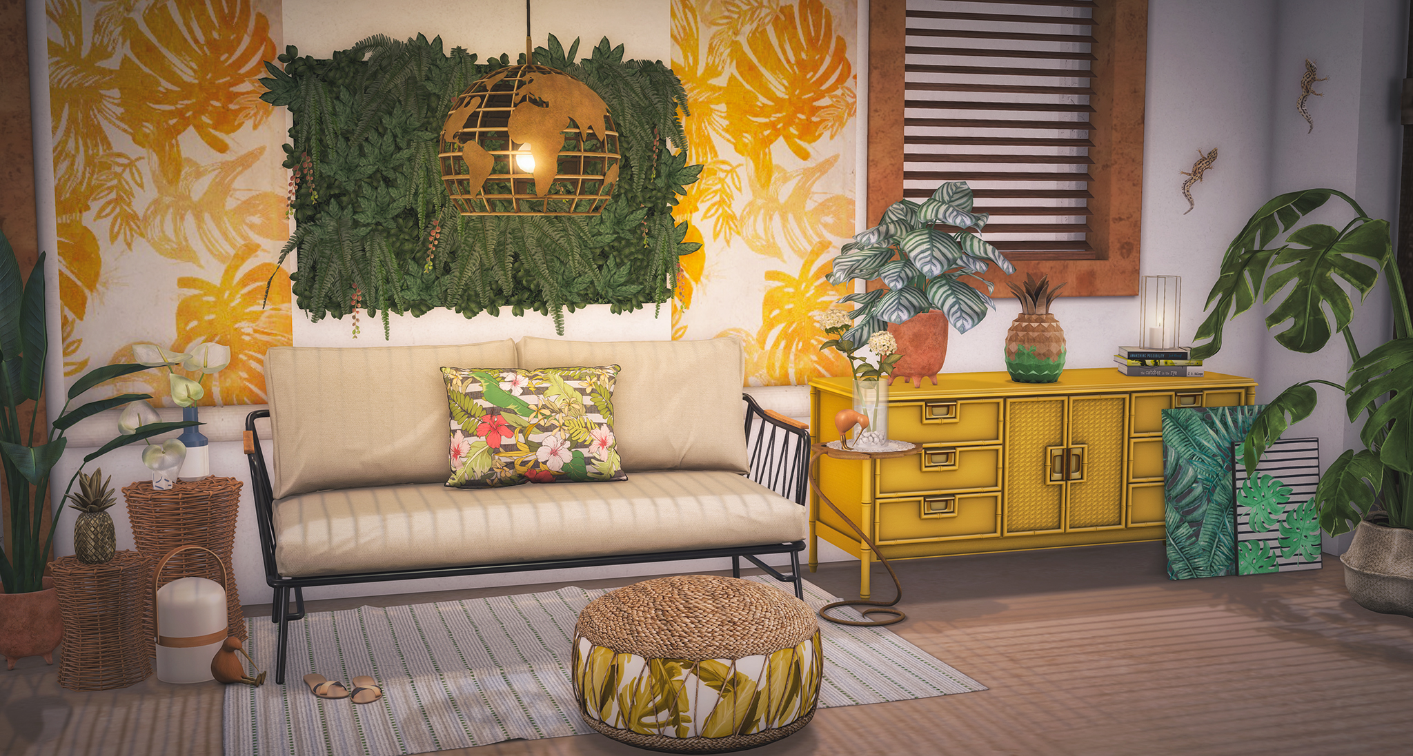 It’s the big Collabor88 birthday round this month and it’s a fabulous theme! Rainforest! The range of home and garden decor available put a huge hole in my credit limit but everyone pulled out all the stops. Today’s scene features items from Loft & Aria, Kalopsia, Soy, Second Spaces and Vespertine which are all available from the round. The Callisto sofa from this set is rezzed in my home too…there’s a pose with a martini while lounging around which makes me smile big time! So now I can sit on my SL veranda and sip martinis! Perfect. Here’s a tip too in case you don’t have this set up. If you own your parcel or sim you can add an experience key to your land to allow props in furniture items, using the avsitter tools, to auto-attach to your avatar for a seamless change and a more immersive experience with your furniture. If you own your parcel simply go to the experience tab on the about land area and add the Avsitter by Code Violet experience to run on your land then hop on some furniture with props and see the difference!