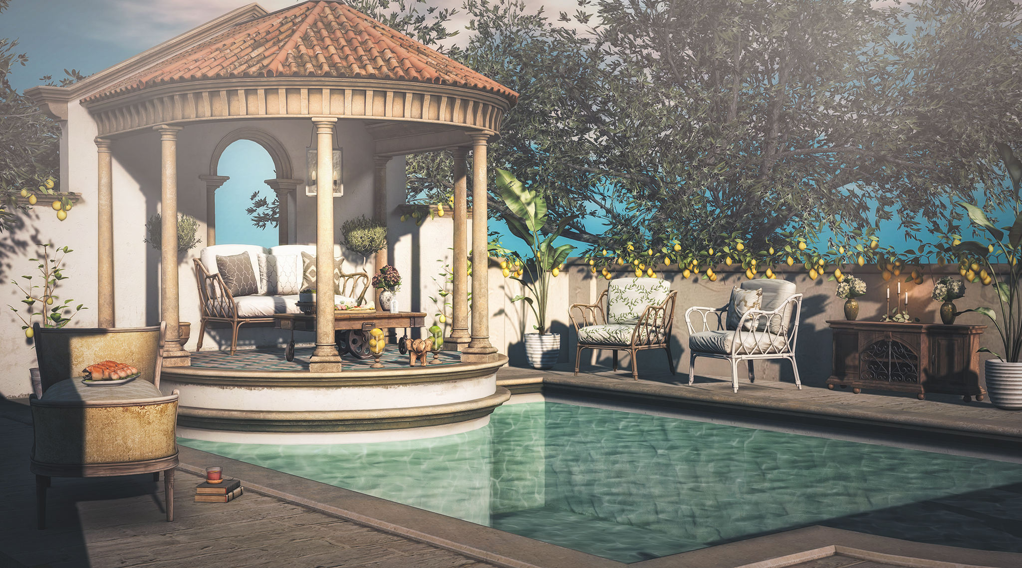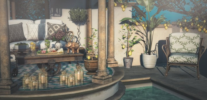 Apple Fall has a huge new mainstore release and a new group gift in store at the Apple Fall Mainstore. Titled “Looking East” the set comprises of a large adult and pg animated pool and assorted furniture and decor items including adult and pg sofas and chairs. Apple has produced a catalogue/brochure to accompany the release which can be viewed here. As always, the devil is in the details with Apple – there are 24 cushions to accompany the set with original and sometimes hand produced textures, a food platter that looks so realistic I actually became hungry taking the photos and lots more. Check out the full set at the Apple Fall mainstore.