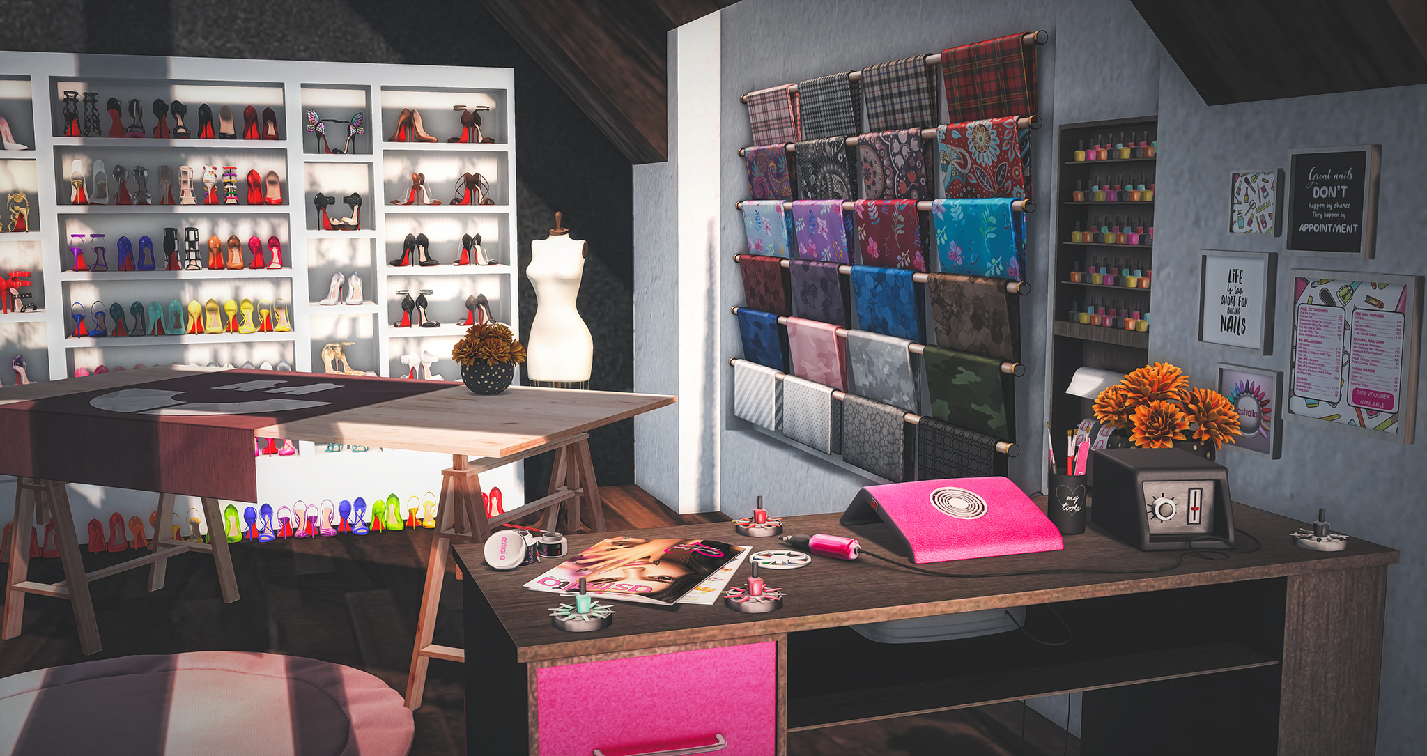 Decisions! Decisions! Shoes, Clothes or Nails…We’re modern women, we want it all. The good news is we can have it all at the current round of The Arcade with these amazing items from Dead Dollz, Garbaggio, Astralia and e.marie. Sprinkle in some Silence and Ariskea and this is the perfect girl pamper palace!