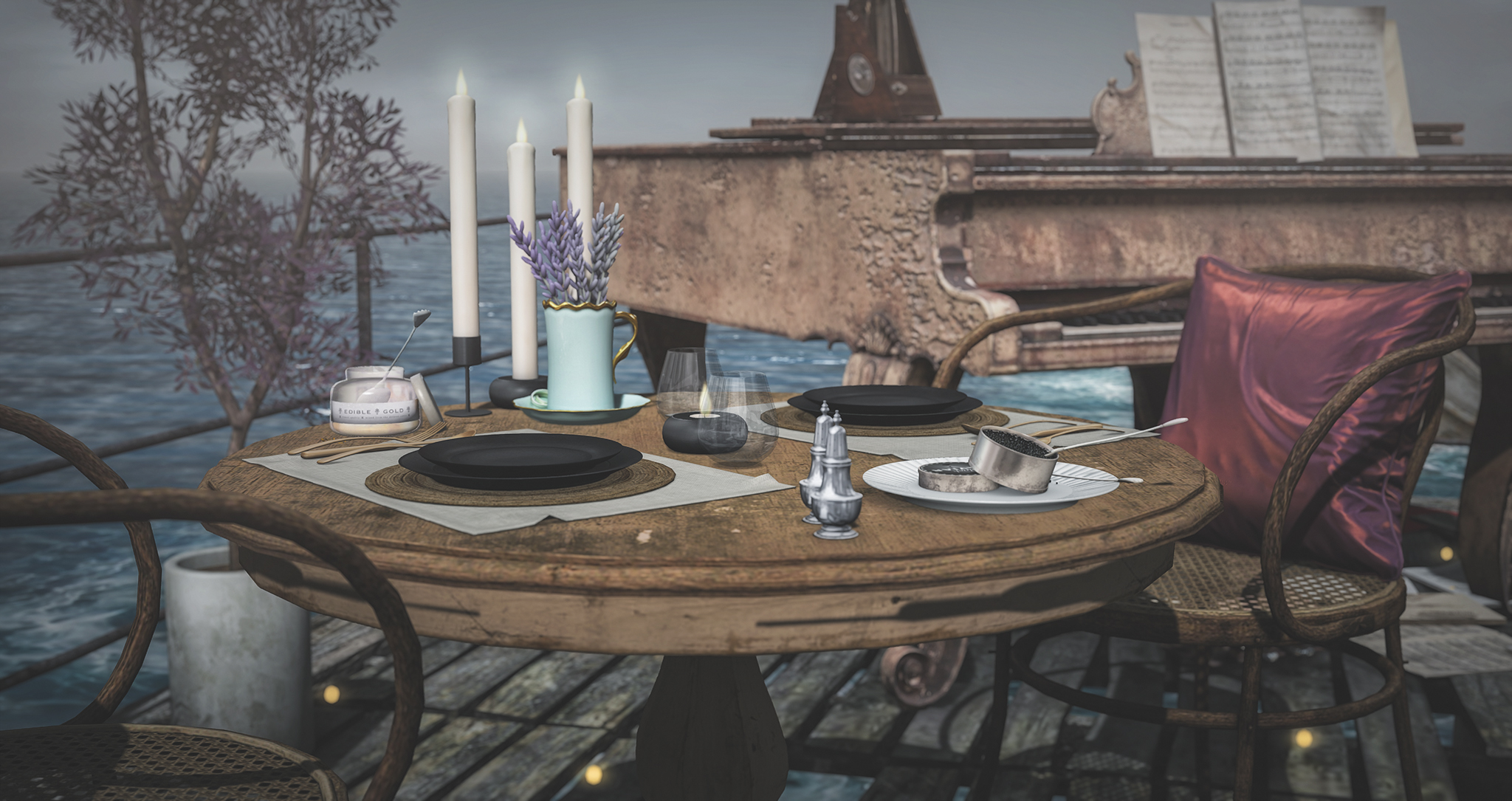 Sundays are chill days. Apparently so are Wednesdays these days but as I work on Wednesdays in both rl and sl I am going to stick with Sundays as my chill days. This weekend is a little different as I’ve had more time to myself than was planned or I wanted but that did mean I was able to take a few photos and decorate a little more around the house. I decided after decorating this area that I want to keep it. Part of it was already there on the dock we have at home but I added the dining area for this photo.