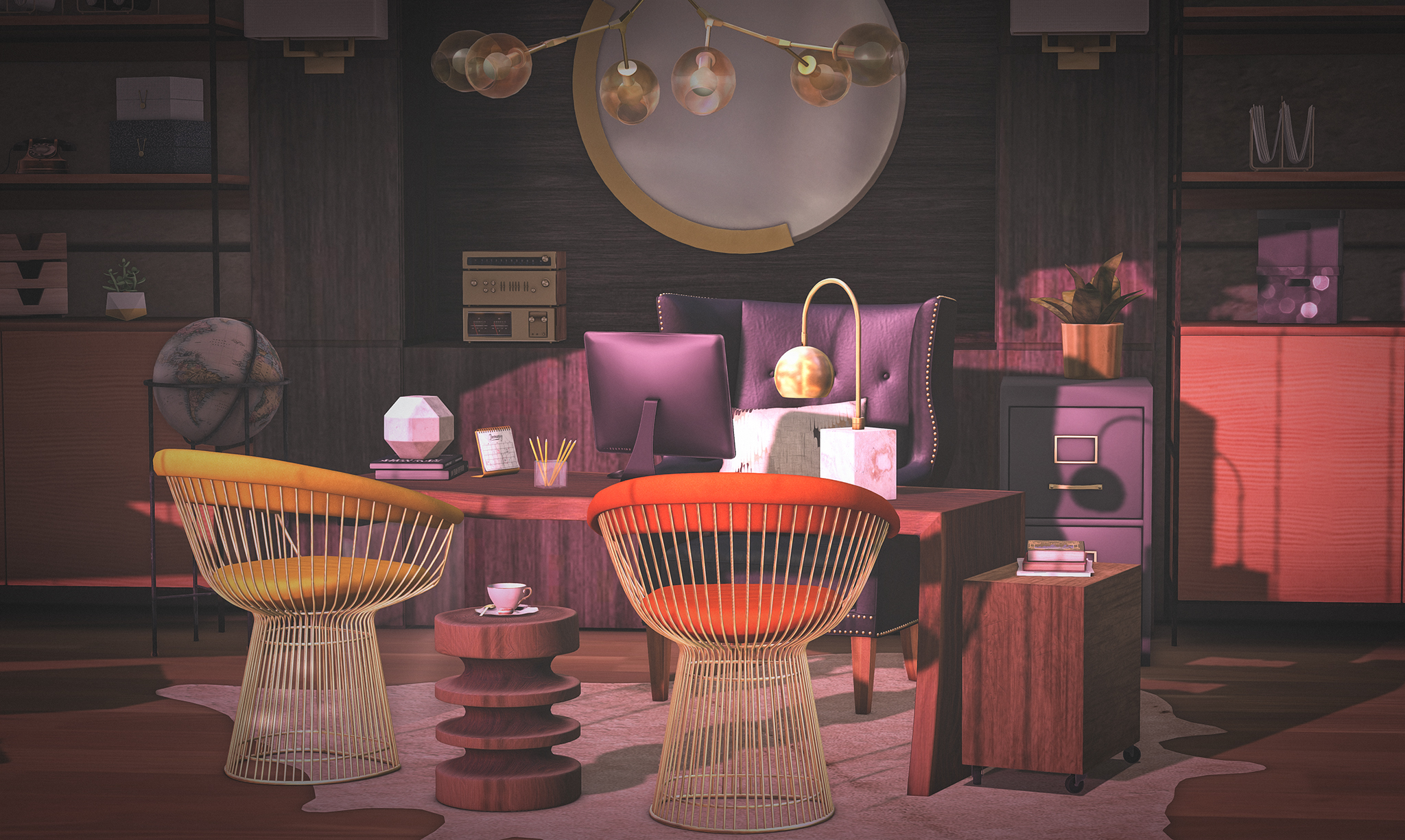 My photo is one I took a few days ago featuring this great office decor set from Loft & Aria at Collabor88. One of the reasons I love Loft & Aria so much is the colour and texture options that come with their items. It may be a bit geeky but I love clicking through the menus and finding all the patterns and colours they have included in each item…and it’s not just the ‘big’ items like chairs etc…quite often there are options to change the details on the smaller items in their sets too. Always, always check the menu to see what surprises await and mix and match up the items. It’s a big part of the fun of decorating.