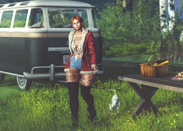 And that is what happens when you haven’t had enough sleep and you’re multitasking just a little too much! I published the post before writing anything! If you are reading this you are seeing the updated version! Blueberry and Addams have gotten together for another fabulous collaboration and I’m wearing nearly all the elements in this photo!!! The boots, socks and shorts are Blueberry and there are also some really nice fishnets that work with the shorts for a more glam look. The jacket and top are Addams and the patterns and textures on the top are adorable! I loved this one I’m wearing with the russety colour of the jacket I chose too.