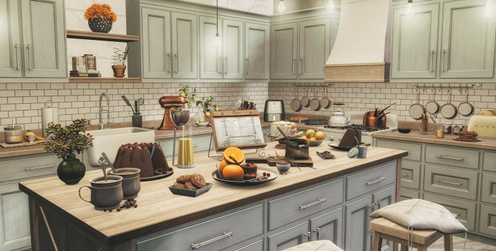 This kitchen now has interactive animations, barstools, and a stocked fridge that opens/closes.