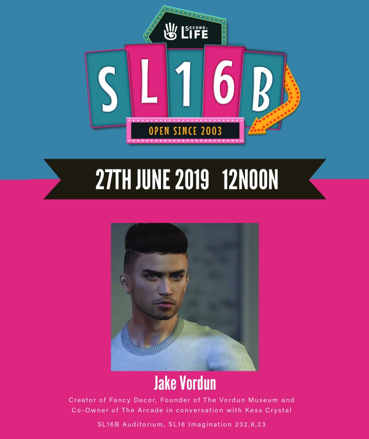 Today at SL16B I’ll be in the Auditorium interviewing my friend, and amazing content creator Jake Vordun. Jake is the designer behind the brand Fancy Decor and the founder and owner of The Vordun Museum and Gallery. Additionally, this year, Jake became one of the Co-owners of The Arcade Gacha event. He’s a busy man with big plans for The Vordun in particular that we will be sharing some of with you today.