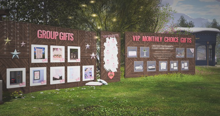 When you arrive you are in a circular welcome area where the very friendly bot will greet you and remind you to wear your tag. This is important as you will receive a 10% discount on items with it. Close by is the wall featuring the links to all the events the store is taking part in regularly, the group gifts, giftcards, redelivery and teleport links to the older items and adult items.