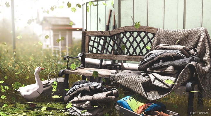 *Nutmeg. Garden Bench w/Blanket Pile A (Dirt Legs)