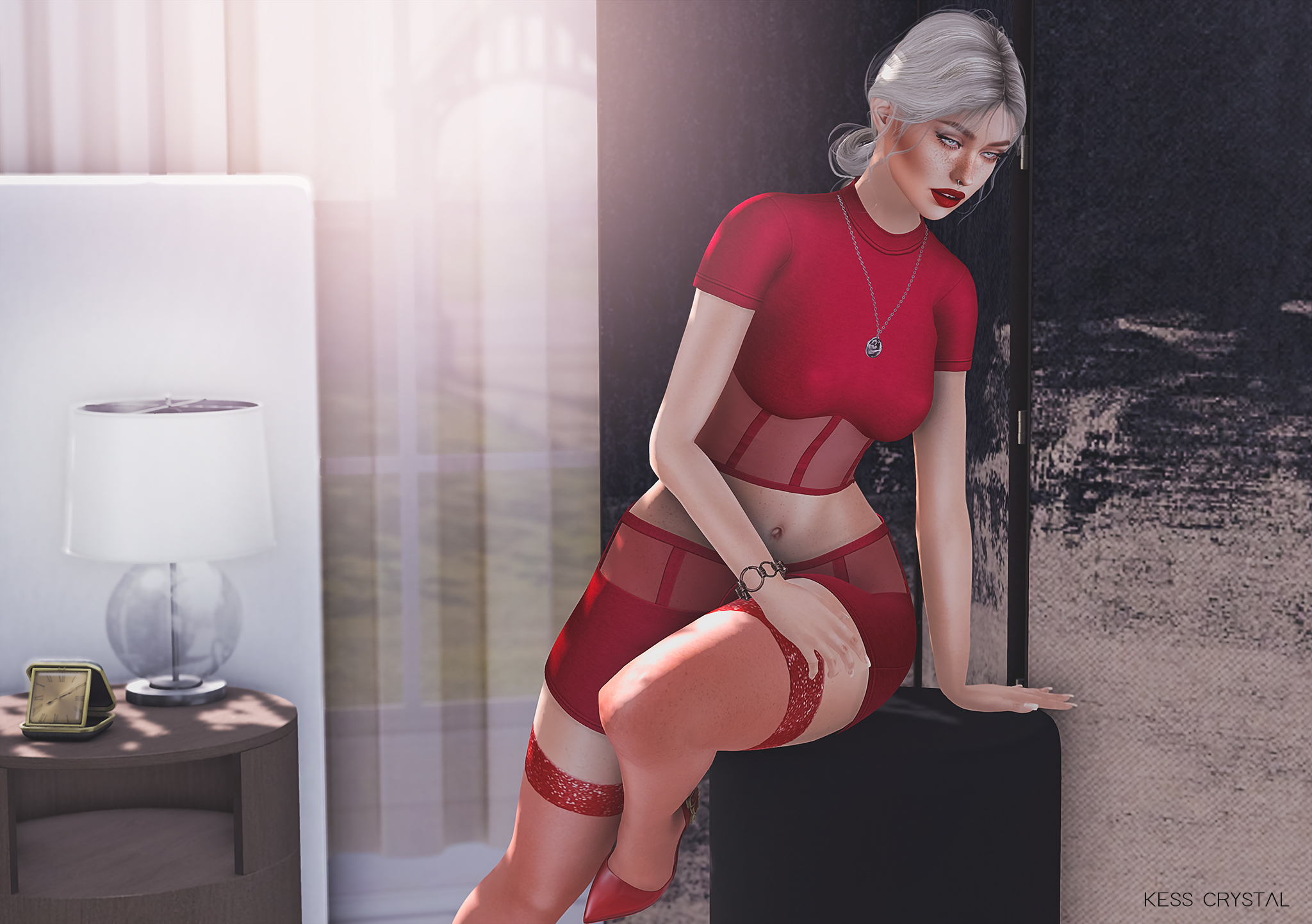 All the credits on the items worn and the decor is listed below.