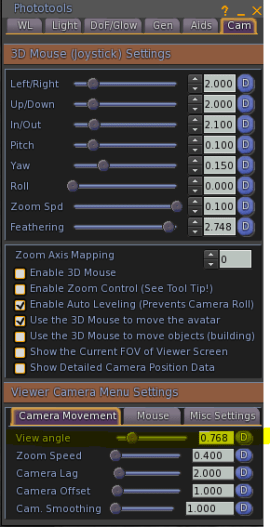 You can find the view aspect in Firestorm in the Phototools area under CAM.
