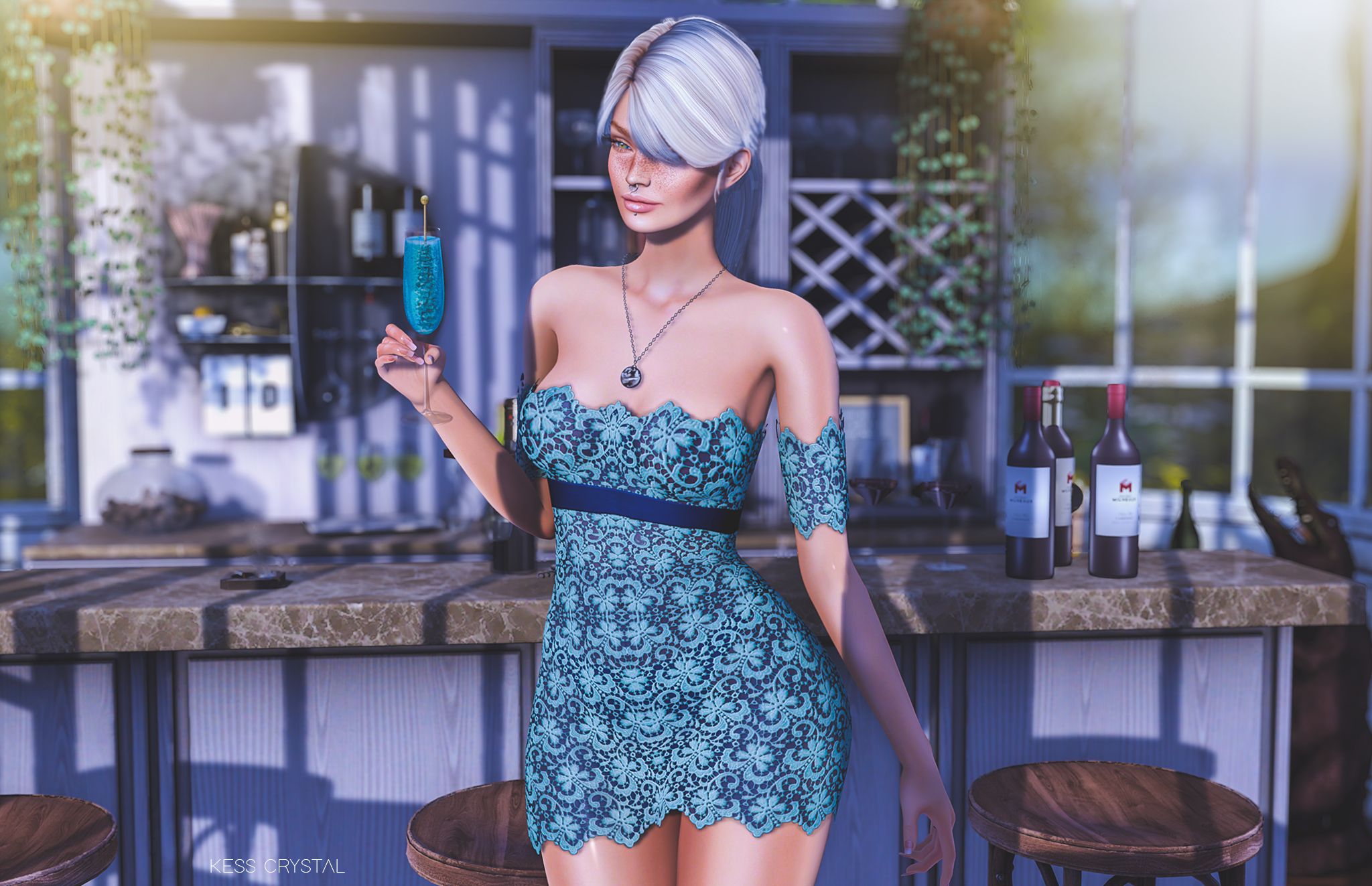MINA is back after taking some time out of SL to learn new techniques and unless I missed one this is her first alpha hair. She’s done a great job with it and this style is a simple ponytail style with a lovely tucked behind the ear sweeping fringe. The dress I’m wearing is from Dead Dollz. It was a released in two colours for Fifty Linden Friday a couple of weeks ago but is also a full release in a large range of colours in the store. I am wearing this on Legacy, even though it’s Maitreya only, with the Legacy fit deformers and it works perfectly!