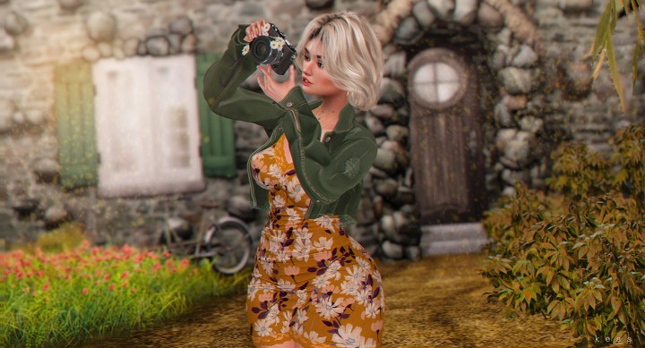 I am a little late to the party as I am wearing the Fall patterns version of the Forget Me Not dress by Blueberry that was in TSS 2 weeks ago but in all honesty I took this pic at the time but didn’t post. I’m not sure if it’s the same for bother bloggers but I will take three or four pictures that I absolutely love and then I get a bit of a lull where I am not as happy with the pictures. This is usually when I take a break and do some decorating or decor photos for a bit to find my mojo again. But it seems that I personally cannot be happy with both my decor pics and avatar pics at the same time. It’s always one or the other!