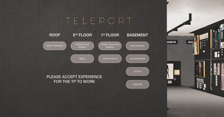 Salt & Pepper updated their mainstore a few years ago now and it’s a stunning, roomy build inside. When you first enter the store to the right is a board with teleport links by experience to various areas of the store.