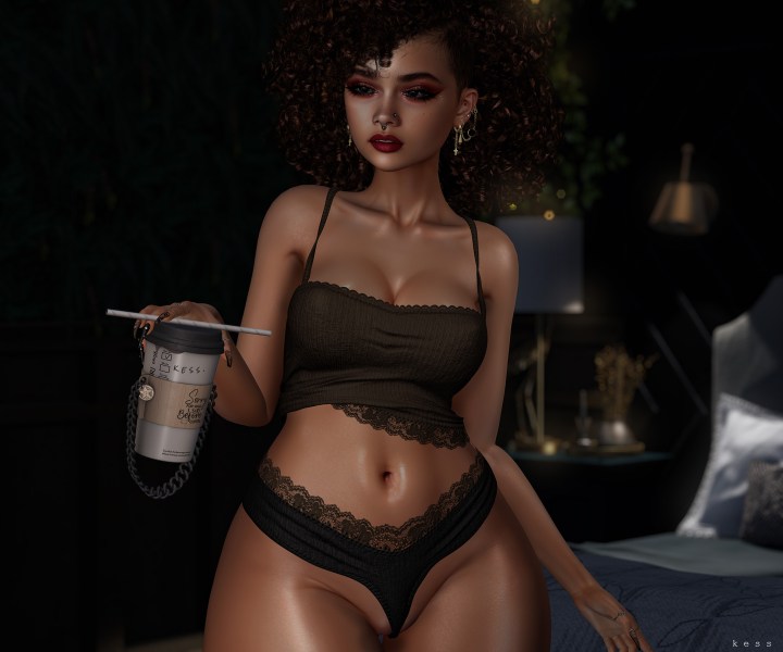 I love this cute set I picked up at Kustom9 from Aloe. I had looked high and low for a cute lingerie/loungewear set that I felt comfortable in. I wanted sexy but not too revealing and shopping for it made me feel like Goldilocks. I could find completely covered or barely covered but couldn’t find that “just right” match for me. Until Aloe came along with this set. The panties come in two versions with options for Reborn, Waifu and Reborn Rolls.